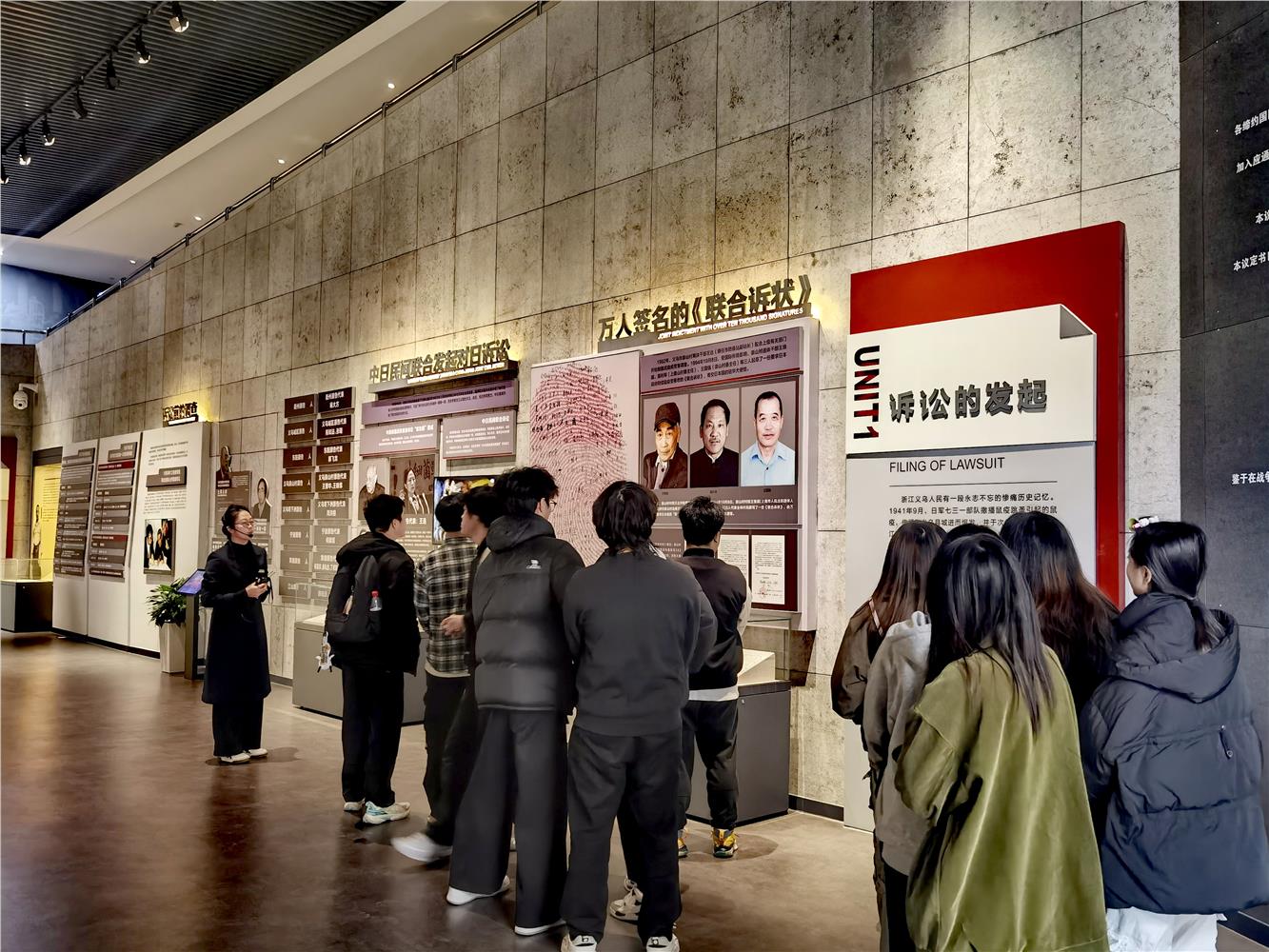 义乌细菌战展览馆作为记录侵华日军暴行、传承红色基因的重要教育阵地,馆内陈列的泛黄历史照片、珍贵实物文物、翔实档案史料及震撼影像记录,系统还原了抗日战争时期侵华日军在义乌地区发动细菌战的黑暗史实,生动展现了义乌人民在深重苦难中不屈不挠、奋起抗争的峥嵘岁月。参观中,师生循着历史脉络认真驻足凝视,仔细聆听讲解,从一组组沉痛的数据、一幕幕触目惊心的史实中,深刻体悟战争的残酷与和平的来之不易,进一步坚定了勿忘国耻、振兴中华的信念。