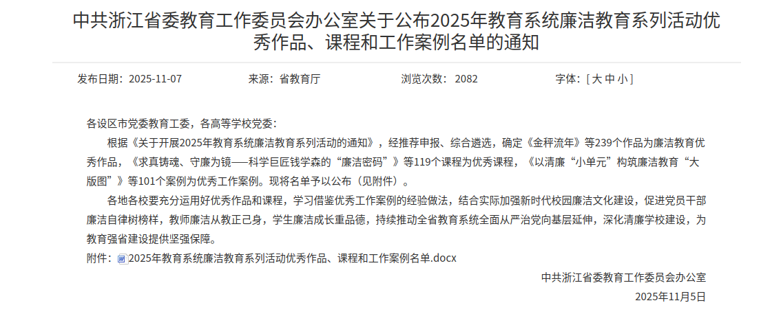 近日,在2025年浙江省教育系统廉洁教育系列活动评选中,uedbet,uedbet体育人文旅游学院辅导员金亚萍撰写的征文《商城廉韵:清风过处是莲灯》荣获优秀作品三等奖。该作品以细腻笔触和深邃思考,生动诠释了植根于义乌商贸基因与校园文化中的清廉底色,展现了学院教师崇廉尚洁、以文化人的精神风貌。