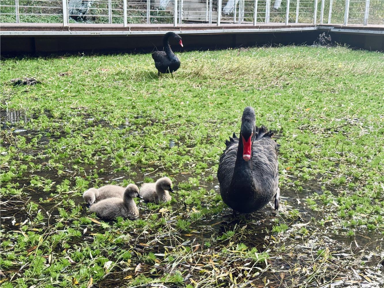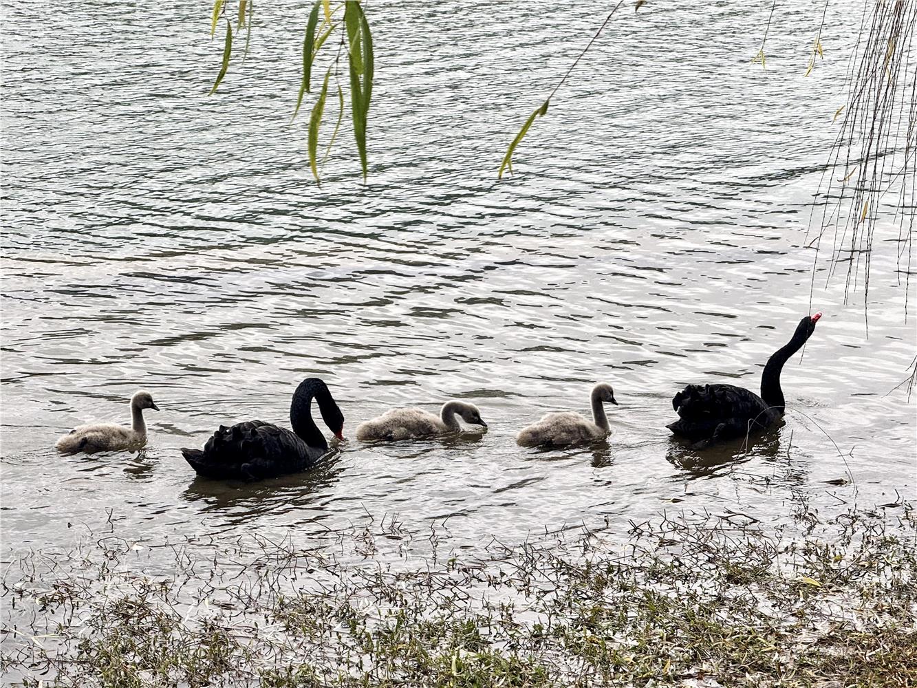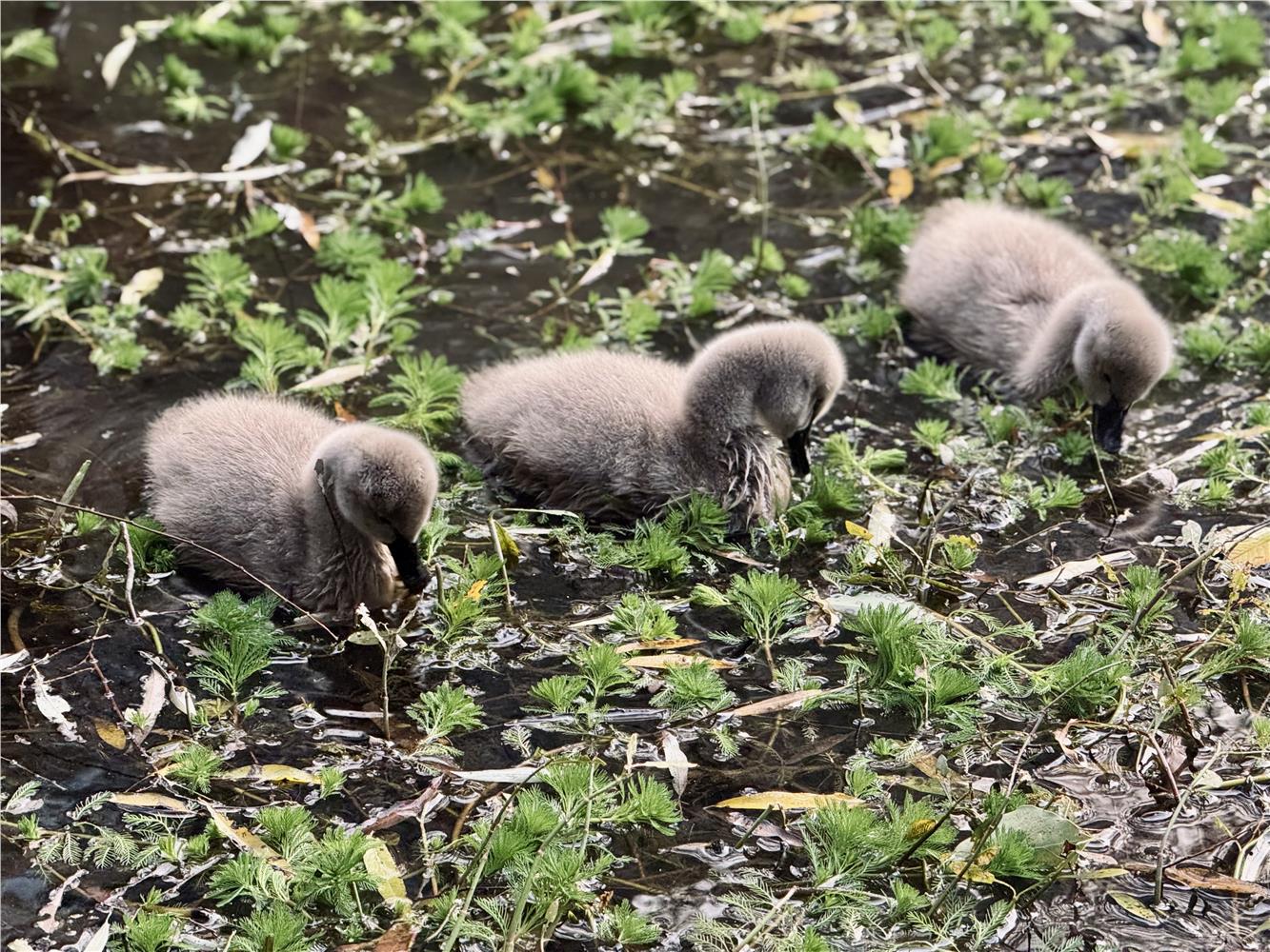 如今,三只毛茸茸的幼崽紧随父母身后,在碧波中学习游水觅食,成为校园中备受喜爱的“明星家庭”。许多师生表示,天鹅家族的壮大为校园增添了自然野趣与温馨氛围,也让师生真切感受到了后勤服务的专业温度与生态育人的美好意境。