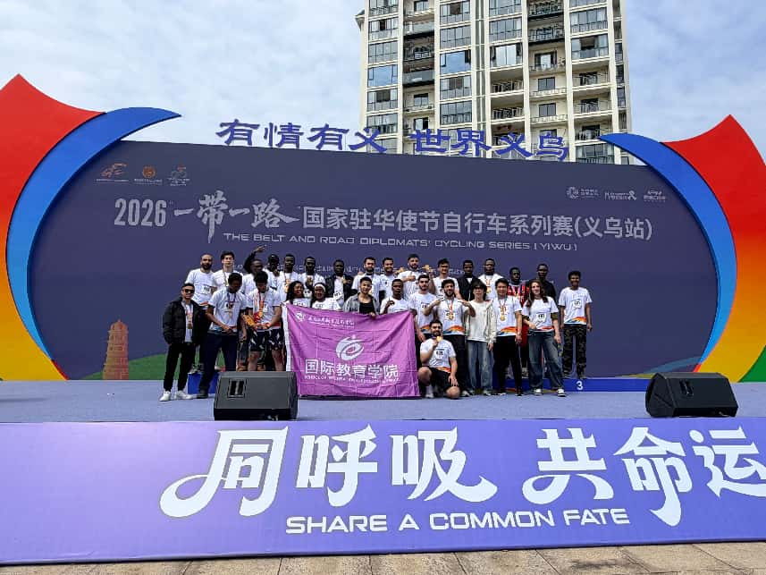 3月29日上午,2026“一带一路”国家驻华使节自行车系列赛(义乌站)在义乌上溪镇溪华棋乐广场开赛。我院受邀组织近30名国际学生参赛,三名学子凭借出色发挥脱颖而出,包揽赛事使节组前三名,在赛场展现我院国际学生的青春风采。