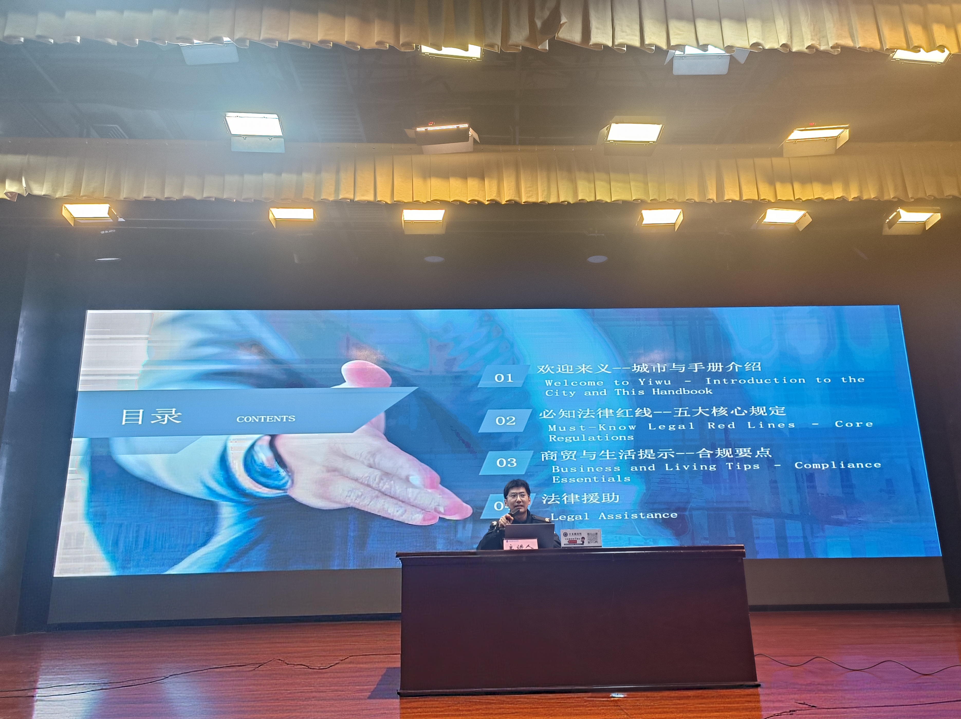 义乌市公安局出入境管理局民警围绕出入境及在华居留相关政策进行解读,详细讲解签证居留办理、证件延期流程、驾驶证换领等实用内容,明确了非法居留、非法就业等行为的法律红线,并介绍了法律援助渠道,引导国际学生在华依法依规学习生活。