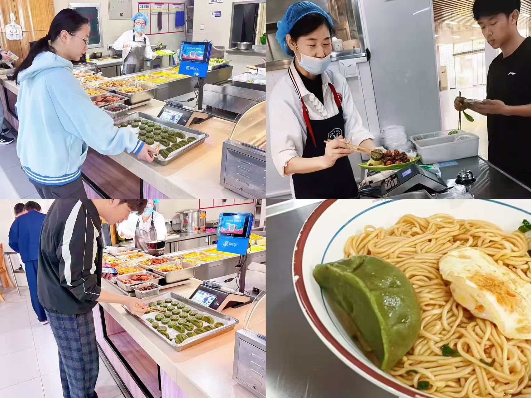 用餐时段,食堂内暖意融融,工作人员有序发放清明粿并送上“清明安康”的诚挚祝福。拿到清明粿的同学们笑意盈盈,纷纷表示,虽离家求学、身处异乡,但这份暖心美食不仅慰藉了乡愁,更让他们直观领略到清明民俗的独特魅力。