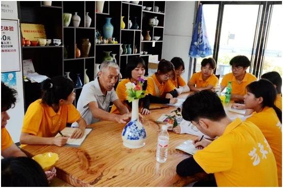 7月11日,该学院“艺束光”艺术服务小分队深入衢州市柯城区碗窑村,开展非遗文化调研活动。调研中,他们拜访了碗窑村陶瓷烧制技艺传承人曾三满。