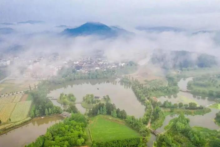 “诗画坛头,醉美湿地。”实践队初至古色古香的坛头,便被眼前的“青”深深吸引。近处碧波荡漾,绿水环绕,远处群山连亘,云遮雾绕,使人心旷神怡。