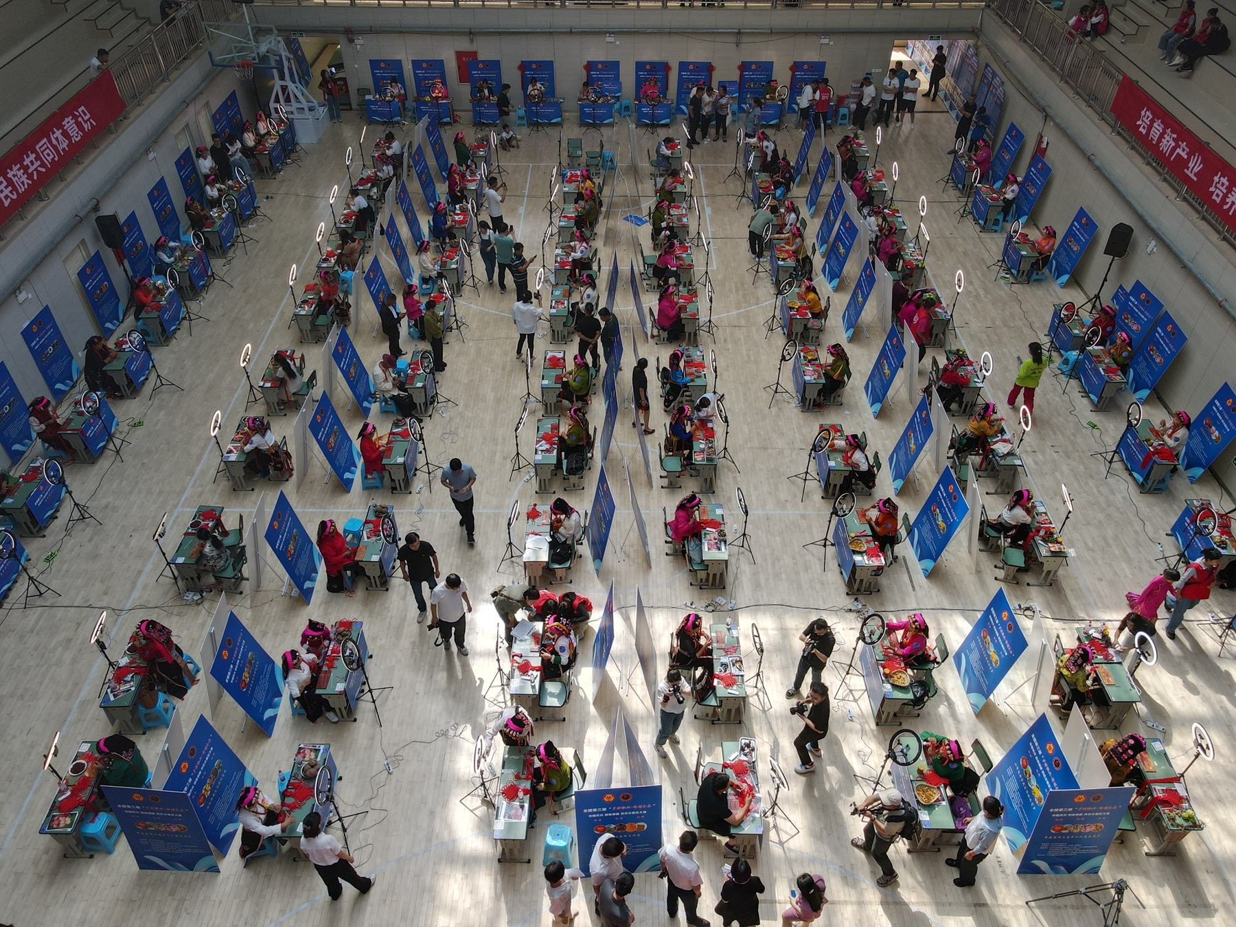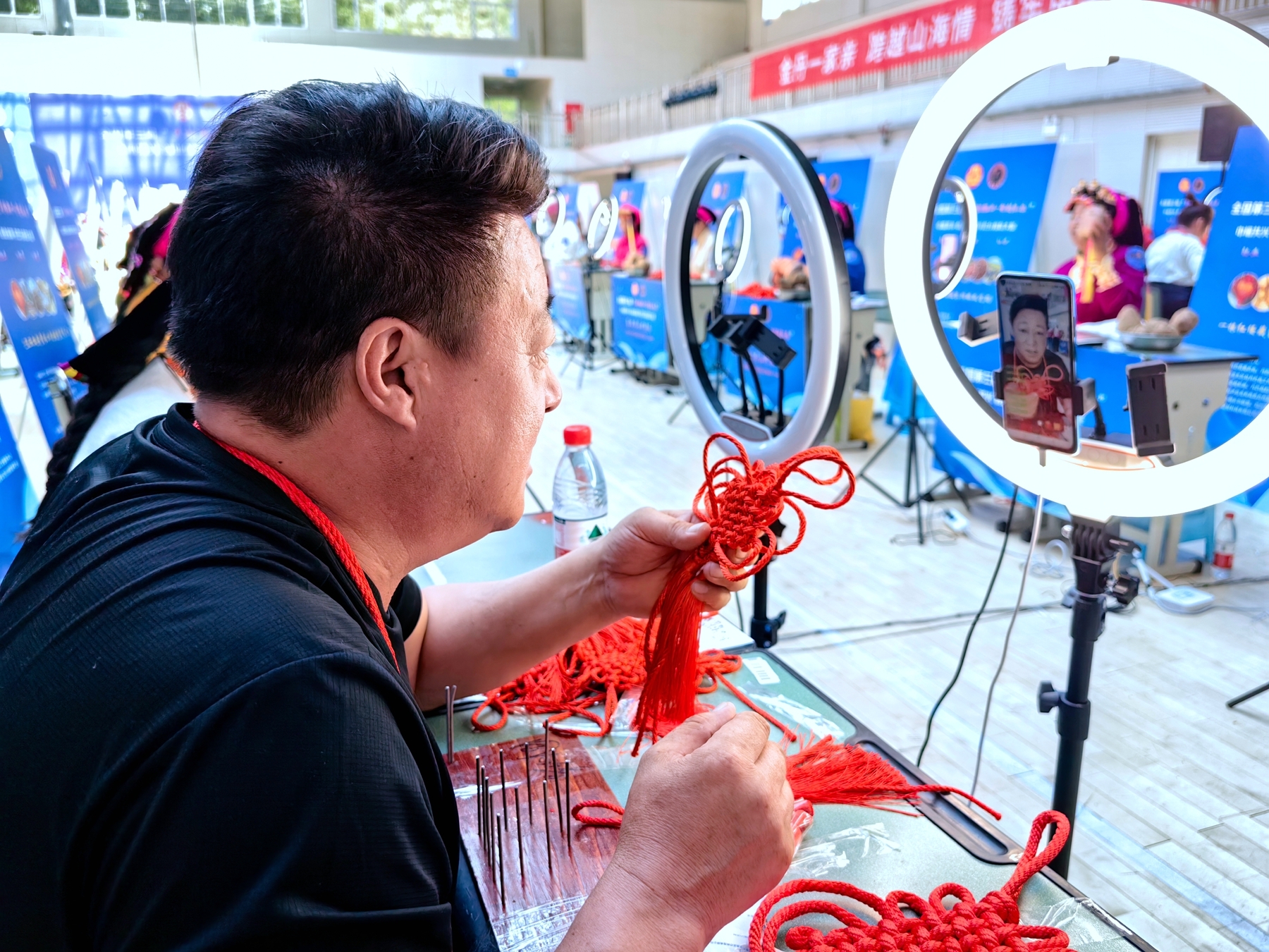 金华市妇联党组书记、主席严小俊远程参与开幕式,她说,中国结作为我国民间特有的传统手工编织饰品,由一根红绳从头到尾编织而成,它不仅是饰品,更沉淀着悠久的中华传统文化。编织中国结投资少、门槛低,是促进富余劳动力增收的有效途径。义乌“00后”大学生驻村导师们不惧高原反应,驻扎乡村1个月,通过“集中培训+入户教学”的方式,与每一位绣娘谈心,了解她们的需求,上门手把手教农户、绣娘们中国结编织技艺,一对一培训短视频拍摄、剪辑技术、直播讲解等技能;同时收集梳理丹巴县12个乡镇区域特色素材,开展旅游推介宣传、民族文化讲述、农特产品推广等“直播教学”,以培训送技术到乡镇,切实开展了助农、助旅、助业工作。金华市妇联还向大赛捐赠了100多个美颜灯和中国结编织具。
