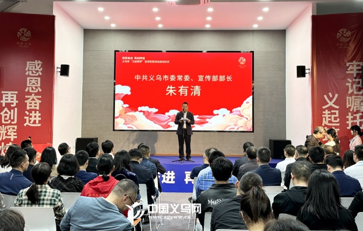 义乌市委常委、宣传部长朱有清作动员讲话。他强调,深入学习宣传贯彻习近平总书记在浙江考察时的重要讲话精神和在金华义乌考察调研时的重要指示精神,是当前和今后一个时期全市上下的头等大事和首要政治任务。宣讲实践活动启动后,要在学习上先人一步,深学细悟习近平总书记重要讲话精神和重要指示精神中蕴含的信仰力量、道义力量、实践力量和创新力量,做到学思用贯通、知信行合一;要在发动上快人一拍,通过广泛宣传宣讲,营造浓厚学习宣传贯彻氛围,推动习近平总书记重要讲话精神和重要指示精神传入万企万商万户,讲在地头店头心头;更要在效果上胜人一筹,扎实推进“同步协调集中讲、领导干部带头讲、多维联动矩阵讲、阵地走亲互动讲、循迹溯源蹲点讲”五大重点举措,全市各镇街各部门要认真把自己摆进去、把工作摆进去、把职责摆进去,推动广大人民群众深刻学习领会、准确理解把握习近平总书记重要讲话精神和重要指示精神,坚定不移朝着世界小商品之都勇毅前行,奋力谱写中国式现代化义乌篇章。