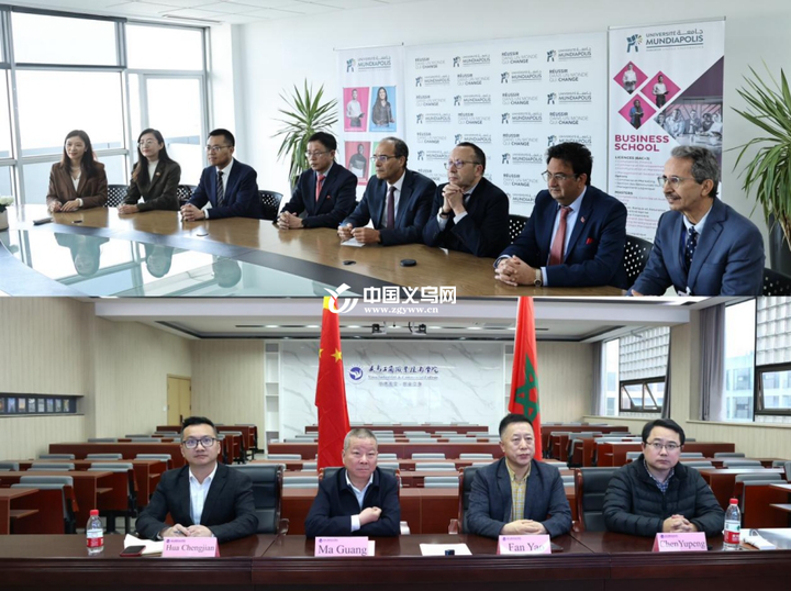 摩洛哥当地时间3月20日,摩洛哥义乌丝路学院在义乌工商职业技术学院摩洛哥义乌商学院合作院校蒙迪亚波利斯大学揭牌。义乌工商职业技术学院、蒙迪亚波利斯大学、中北非国际教育创新联盟相关负责人以及学校师生代表现场见证。