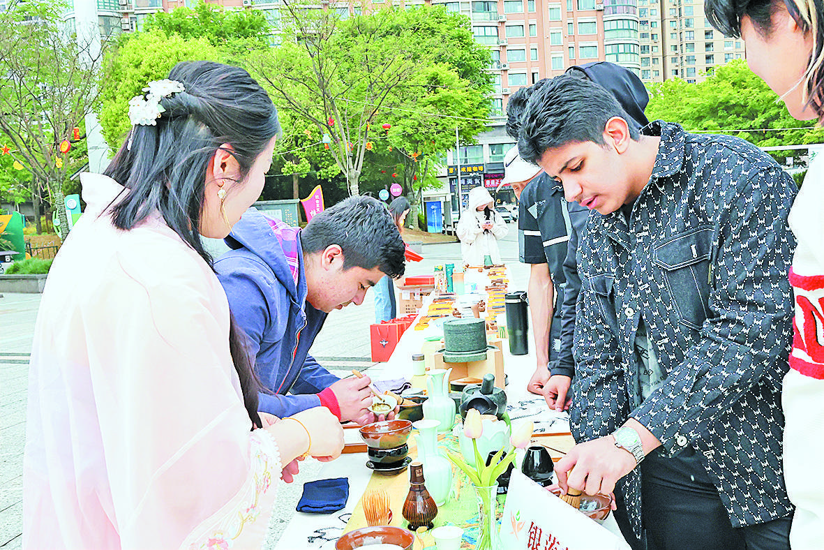 活动现场,尤为引人注目的是,来自义乌工商职业技术学院、“感知中国”浙江省国际学生名师工作室的30余名外国留学生热情参与,他们以中外阅读交流为桥梁,深入探索中华优秀传统文化的内核,同时通过亲身体验古法拓印技艺及品味传统点茶艺术,生动展示中华传统文化的独特魅力,并积极向国际友人传播推广。
