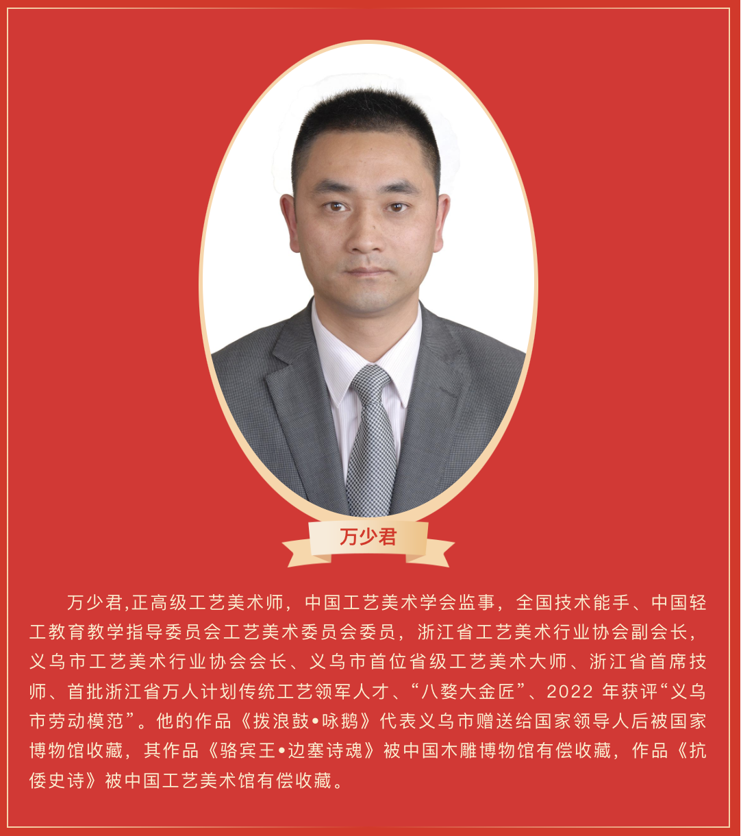 近日,人力资源社会保障部、中国轻工业联合会、中华全国手工业合作总社联合发布“全国轻工行业先进集体、劳动模范和先进工作者”表彰名单,义乌工商职业技术学院教师、义乌市工艺美术行业协会会长万少君入选“全国轻工行业先进工作者”
