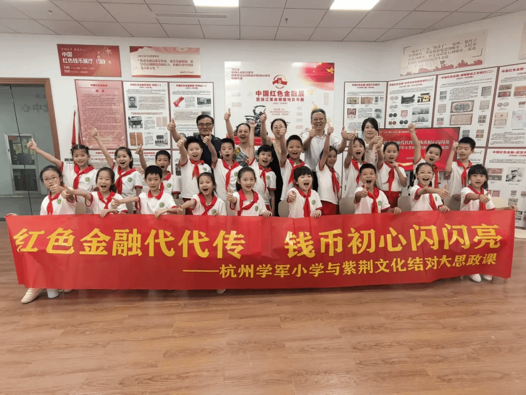 该项目由浙江紫荆钱币文化中心联合浙江经济职业技术学院、杭州市学军小学等推出,以红色金融为载体开展理想信念和奋斗精神教育,服务“大思政课”立德树人目标,探索“社会力量办展、志愿者当主力、巡展扩影响,助力大思政课‘三化’”的新路径。