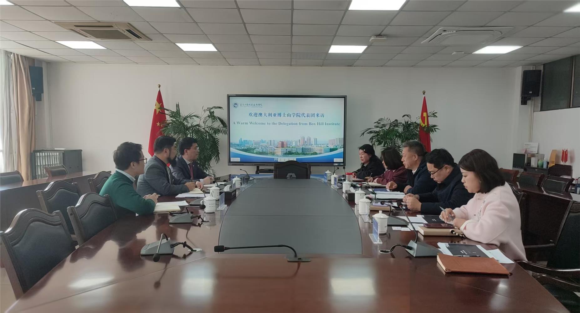 2026年3月10日,澳大利亚博士山学院(Box Hill Institute)国际副校长John Qiu、澳大利亚博士山学院代表张云、汤毅一行来访uedbet,uedbet体育,商讨中澳国际合作事宜。党委委员、副院长樊曜会见客人,国际处、机电信息学院负责人和相关工作人员参加会谈。