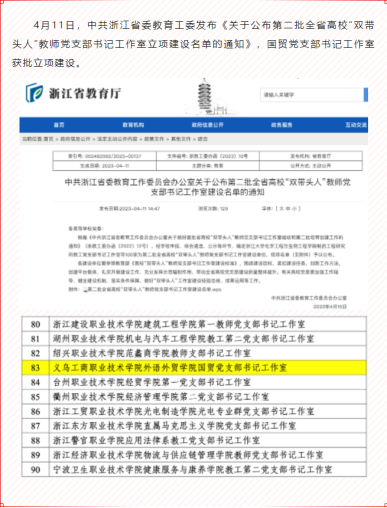 外语外贸学院国贸党支部入选全省高校“双带头人”教师党支部书记工作室