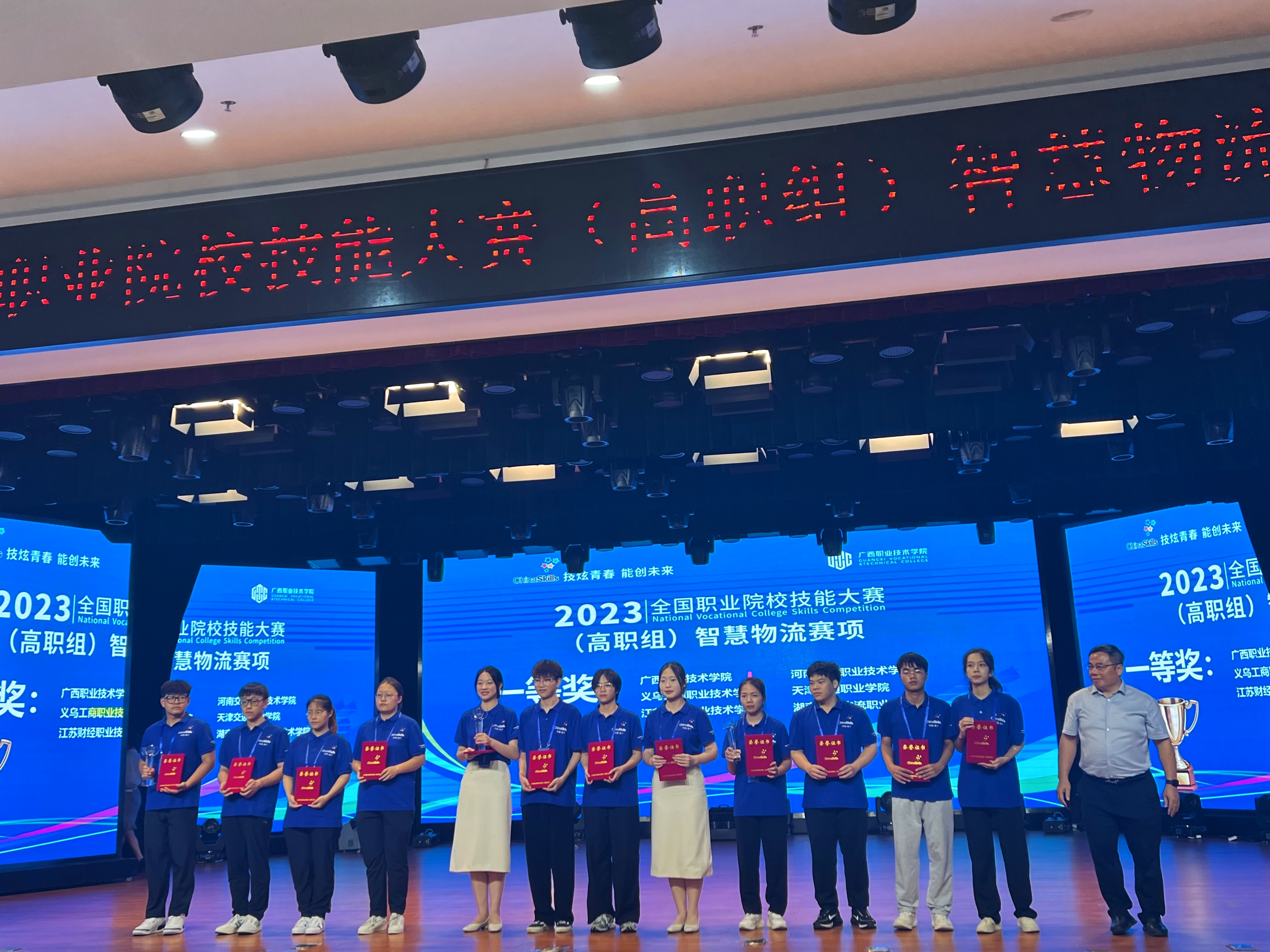 9月23日至24日,2023年全国职业院校技能大赛高职组“智慧物流”赛项(学生赛)在广西职业技术学院成功举办,共有来自全国31个省、直辖市和自治区的63支代表队、252名参赛选手同台竞技。经过连续两天的激烈角逐,uedbet,uedbet体育外语外贸学院吴俊红、袁志兵老师指导的孙楠、林丝丝、朱倩、陈慧婷团队荣获国赛团体一等奖,这是该赛项浙江省历年最好成绩。