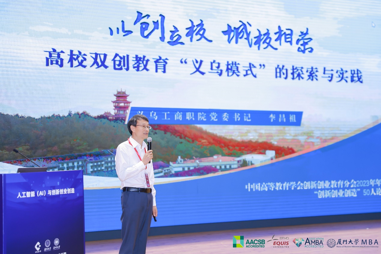 中国创新创业创造50人论坛,是中国高等教育学会创新创业教育分会组织的,由国内外具有一流学术水准,享有较高社会声誉的创新创业创造教育专家、企业家、政府部门及行业智库专家等共同发起成立,是一个聚焦创新创业创造理论与实践研究的全国性高端智库和高品质交流平台。本次论坛,主办方邀请了来自教育界、产业界的50位创新创业教育专家、企业家和智库专家共同探讨“人工智能与创新创业创造”,其中18位专家学者作了主题分享。党委书记李昌祖在论坛上作题为《以创立校,城校相荣:高校双创教育“义乌模式”的探索和实践》报告,向来自全国的400余所参会高校介绍学校的双创教育工作经验和实践做法。