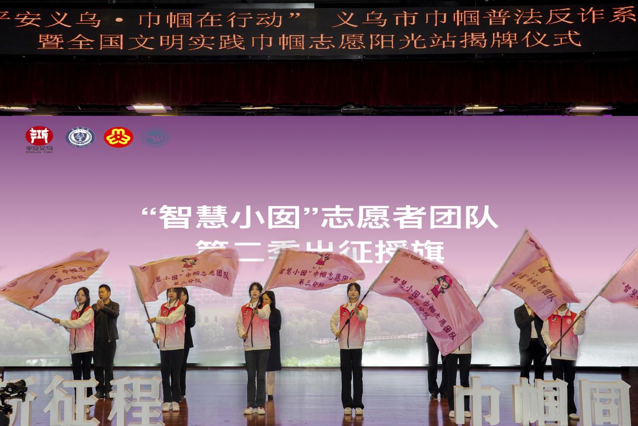 活动现场,与会领导共同为全国文明实践巾帼志愿阳光站揭牌,并为“智慧小囡”巾帼志愿团队第二季出征授旗。“智慧小囡”巾帼志愿团队第二季征程的服务主题已确定为“普法反诈宣传”。接下去,在义乌市委政法委、义乌市公安局、义乌市妇联以及义乌工商职业技术学院的共同指导下,小囡们将接受系统普法反诈培训,并开展第二季镇街巡回志愿服务。