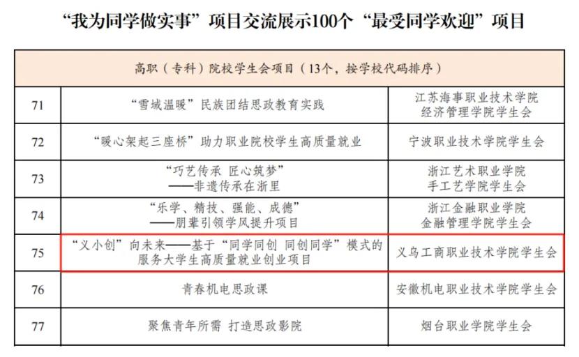 本次活动共吸引1724所高校的3581个服务同学项目参与。经学校自荐、省级推报、全国遴选,uedbet,uedbet体育学生会的“义小创” 向未来——基于“同学同创 同创同学”模式的服务大学生高质量就业创业项目在入围展示的300个优秀项目中脱颖而出,获评全国高校学生会组织“我为同学做实事”100个精品项目(全国高职院校共20个)以及100个“最受同学欢迎”项目(全国高职院校共13个),并作为高职(专科)院校学生会精品项目唯一代表在闭幕式上公开展演。