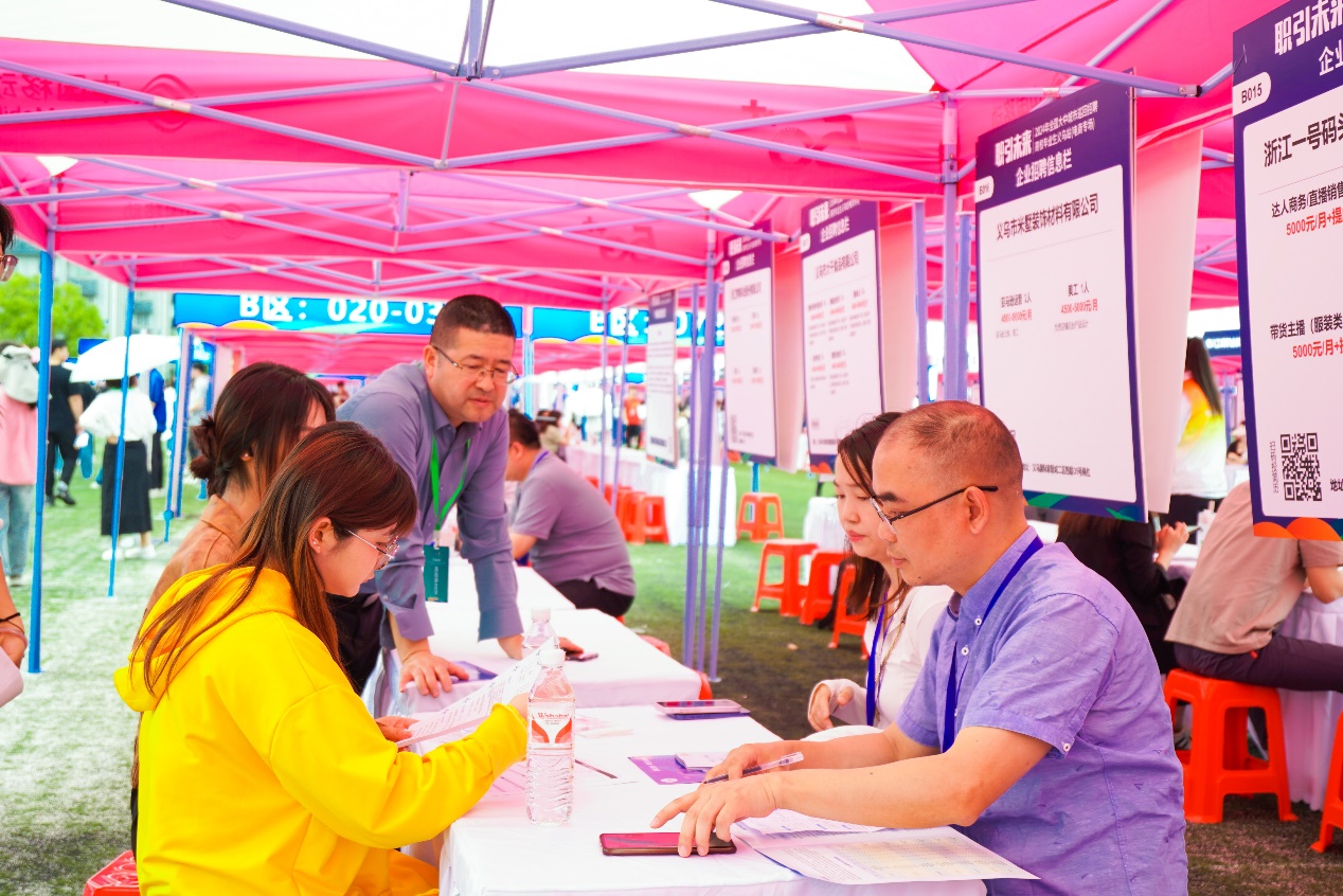 4月28日,职引未来——2024年全国大中城市巡回招聘高校毕业生义乌站(电商专场)活动在学校湖畔操场顺利举行。本次活动由人力资源和社会保障部全国人才流动中心、浙江省人力资源和社会保障厅、义乌市人民政府共同主办,旨在通过搭建校企合作、人才培养的平台,进一步开辟高校毕业生高质量就业通道,打响“就在义乌”“义起创业”品牌。人力资源和社会保障部全国人才流动中心主任杨刚基、浙江省人力资源和社会保障厅党组副书记、副厅长张旭明等出席活动,院长马广、副院长徐美燕参加活动并深入现场与企业互动交流。