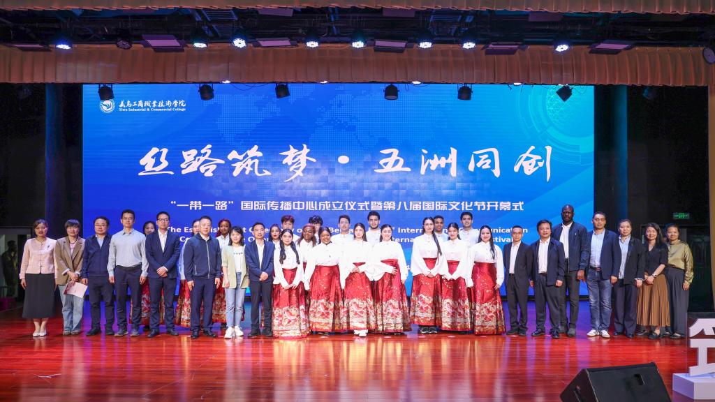 “一带一路”国际传播中心成立仪式后,“丝路筑梦,五洲同创”第八届国际文化节正式启动。丹溪文化厅外的国际嘉年华游园会设有拍照打卡区、美食共享区、文艺表演区和文化体验区,来自100多个国家(地区)的国际学生身着各国服饰,和中国学生一起,流连于各个展区之间,构成了义乌工商职院独具特色的多元文化靓丽风景线。