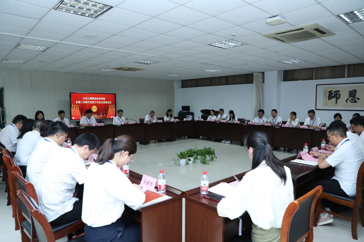 6月26日,学校五届二次教职工暨工会会员代表大会在丹溪文化厅召开。党委书记李昌祖致辞,院长马广作学校工作报告,工会负责人作大会筹备工作报告,提案组组长作《提案工作报告》,计划财务处负责人对《义乌工商职业技术学院二级财务管理办法(修订)》作情况说明。学校党政领导班子全体成员出席会议,152名正式代表和5名列席代表参加、出席大会,会议由党委副书记叶斯源主持。