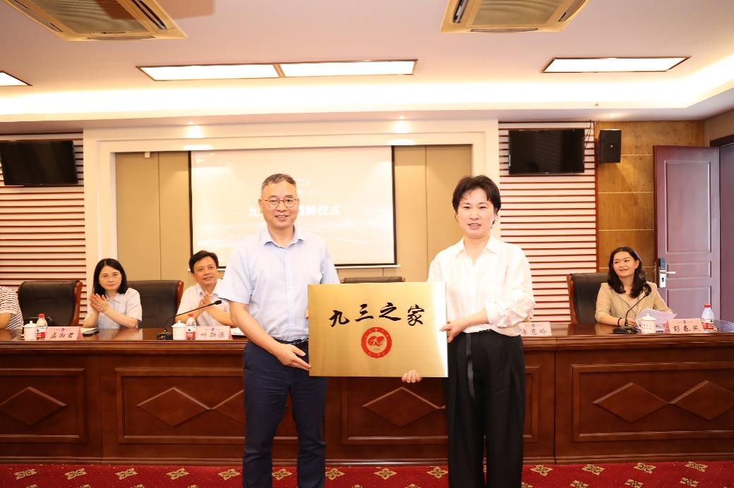 会上,翁一兵宣读学校九三支社成立文件,丁光海为支社授牌“九三之家”。
