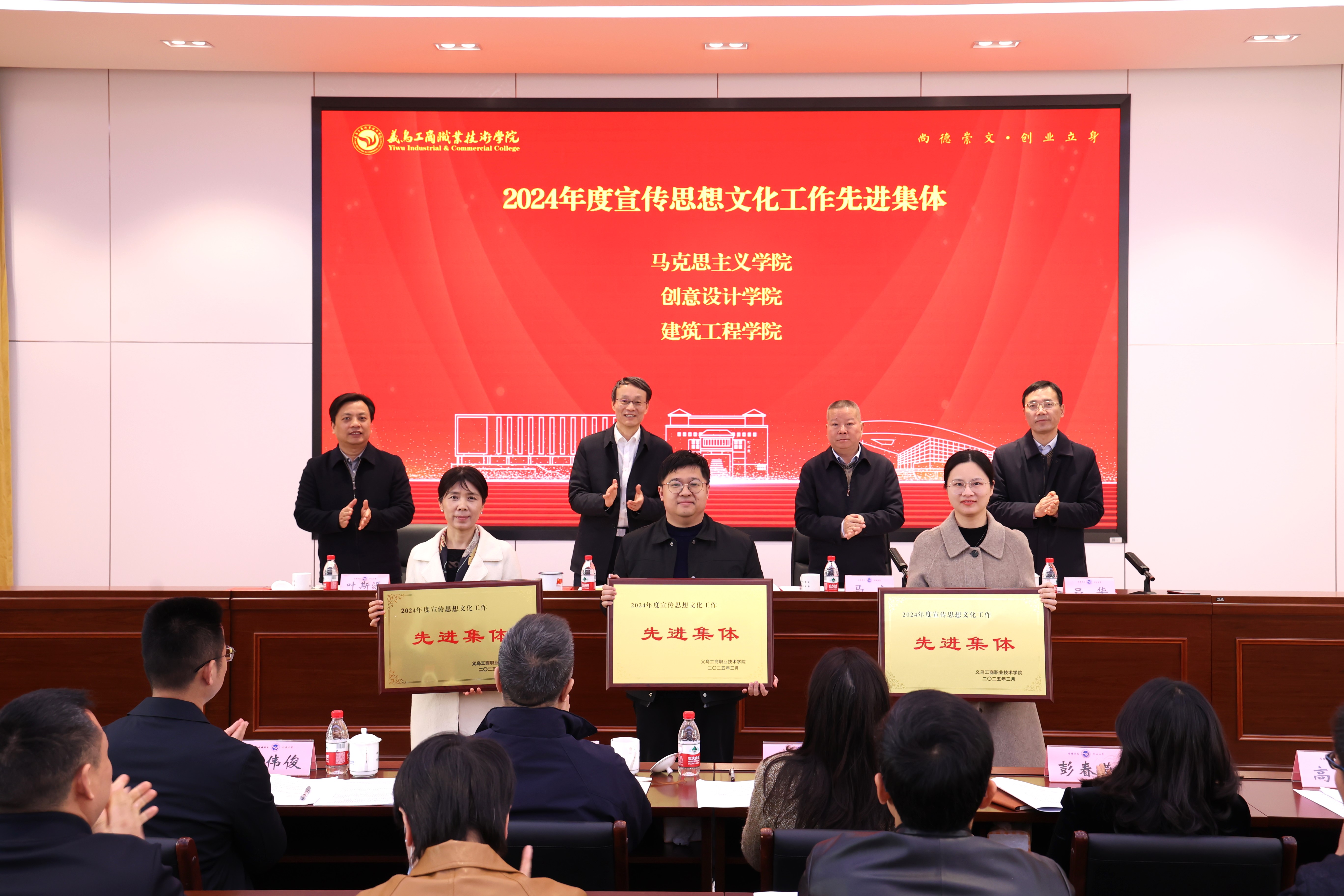 叶斯源宣读2024年度宣传思想文化先进集体、先进个人和优秀网络文化作品名单,校领导为先进集体、先进个人及优秀网络文化作品作者代表颁奖。
