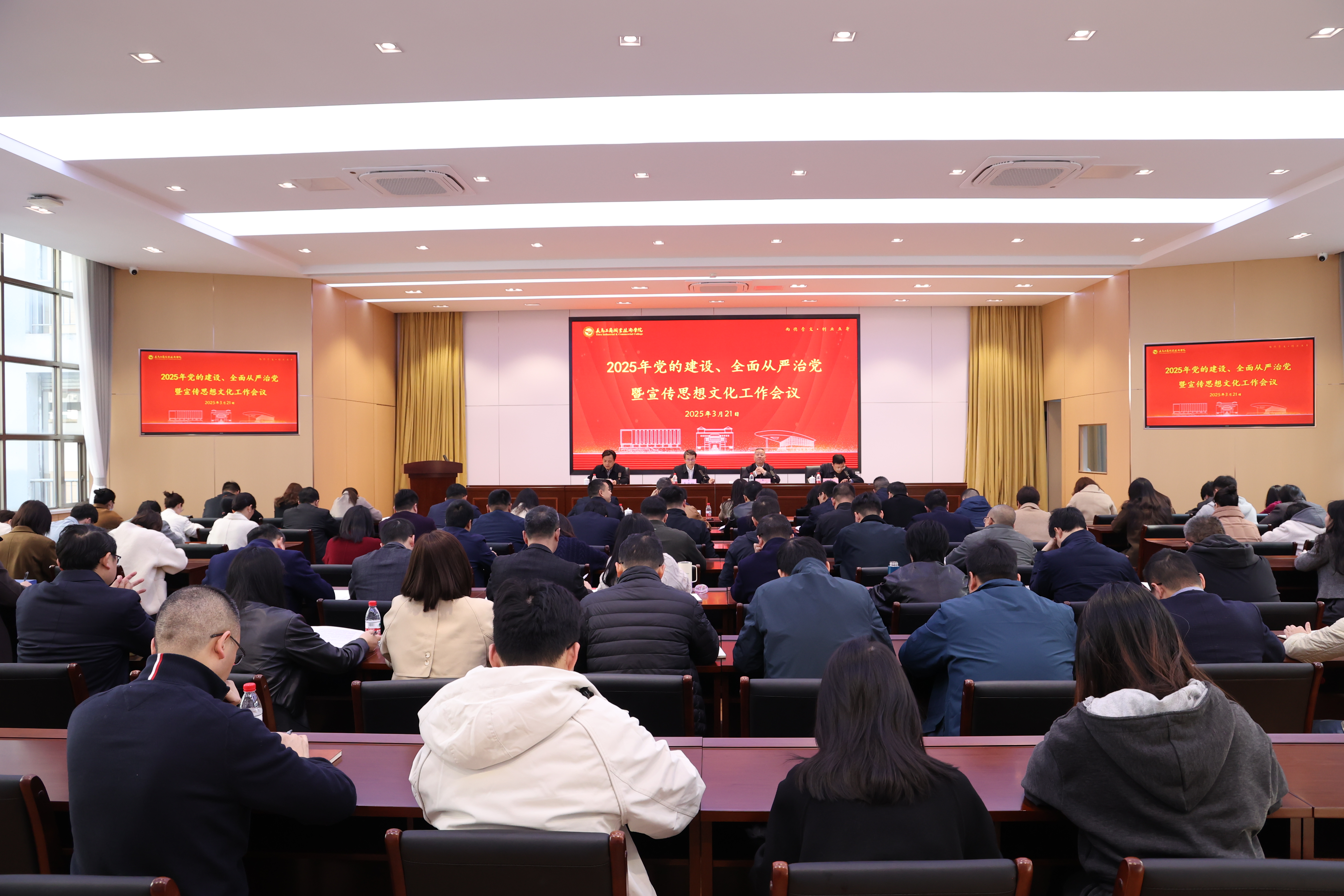 3月21日上午,学校召开2025年党的建设、全面从严治党暨宣传思想文化工作会议,为学校高质量发展提供坚强的政治和组织保障。党委书记李昌祖在讲话中指出,大家要抓住机遇往前站、顶住压力迎着上,干在最难处、冲在最前沿,不负时代、不负历史、不负韶华。会议由院长马广主持。