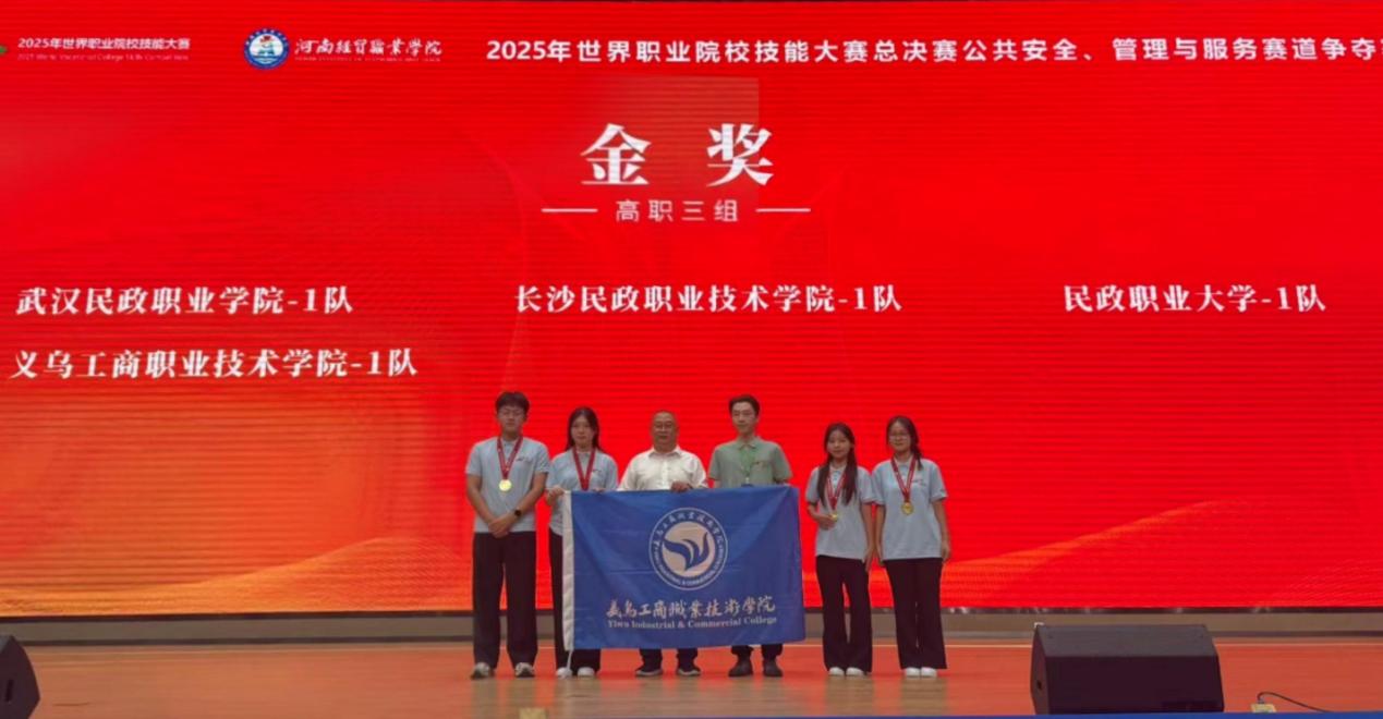 8月29日,2025世界职业院校技能大赛总决赛公共安全、管理与服务赛道在河南经贸职业学院圆满落幕,来自全国各地的职业院校选手展开了精彩的比拼。义乌工商职业技术学院人文旅游学院张鸣宇、季俊含两位教师指导的由学生王齐齐、潘雯卿、邵梦荧、王榆杰组成的参赛团队,凭借扎实的专业技能和默契的团队协作,一举斩获金奖!