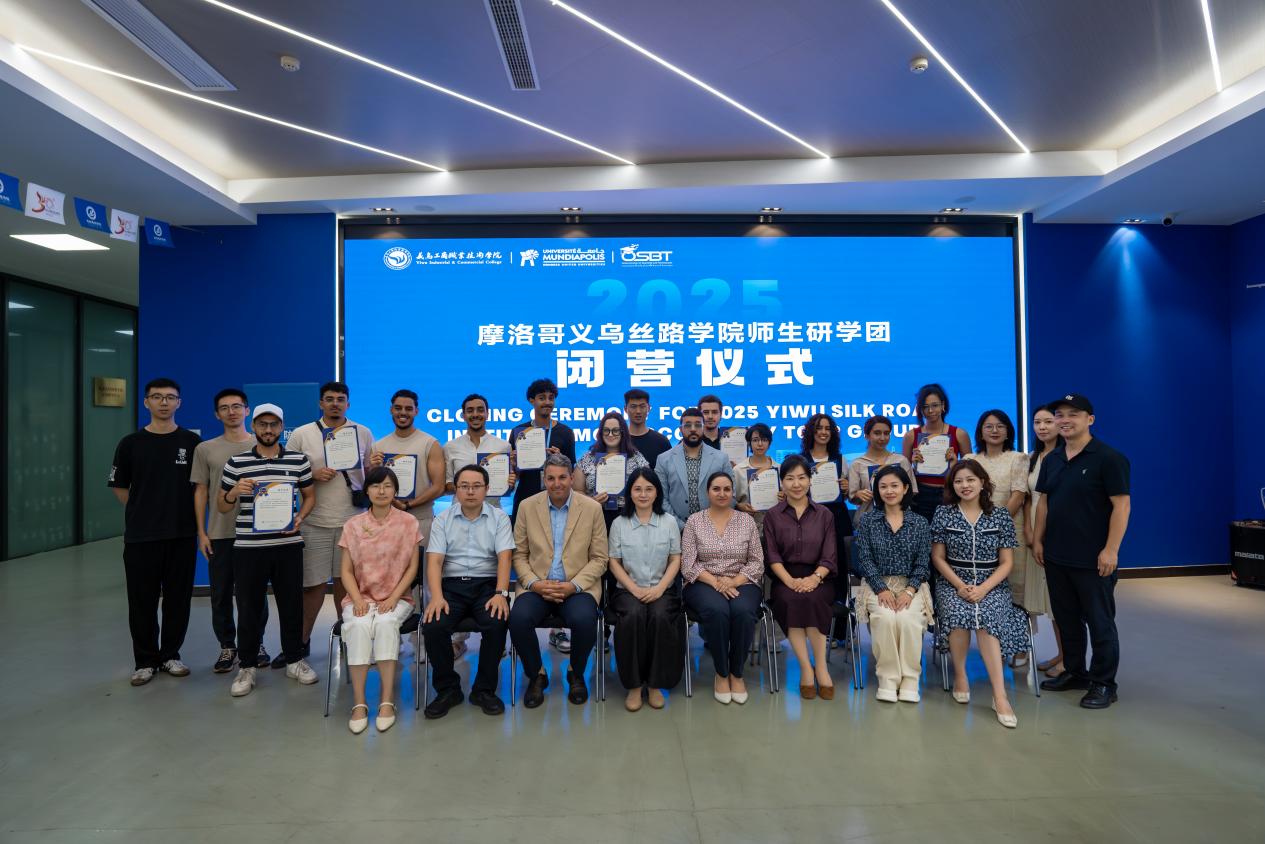 9月1日上午,2025年摩洛哥义乌丝路学院师生研学团闭营仪式在校智能制造科创实训基地举行。通过在义乌、金华、杭州等地的深度研学,来自摩洛哥蒙迪亚波利斯大学、奥米尼亚商业与技术学院的师生们,带着对中国发展的直观认知、对中华文化的深厚认同与对中摩友谊的真挚期待,为此次跨越山海的交流之旅画上圆满句号。