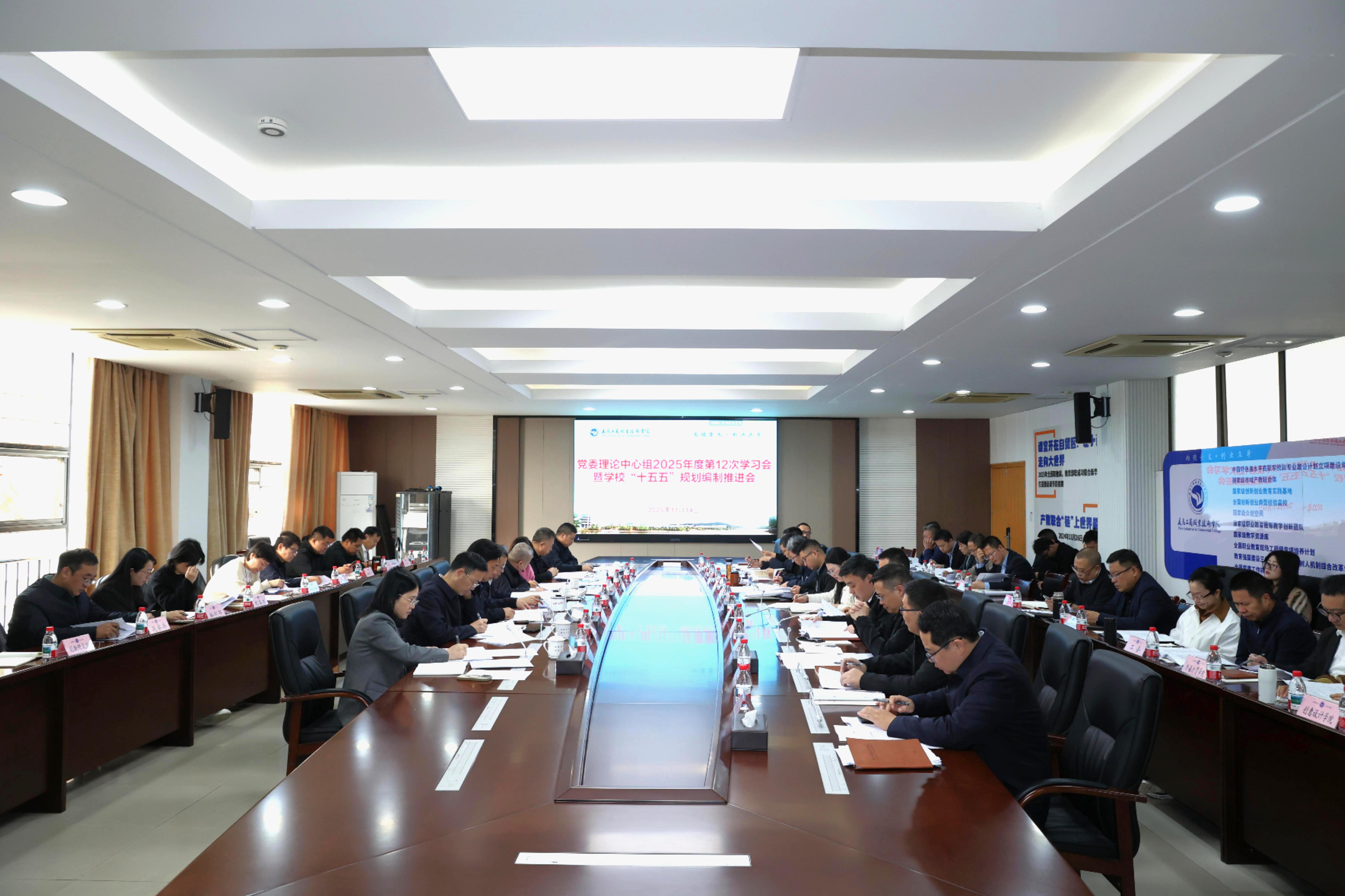 11月14日上午,学校召开党委理论学习中心组2025年度第12次学习会暨“十五五”规划编制推进会,专题学习党的二十届四中全会精神。校党政领导班子成员围绕学习贯彻党的二十届四中全会精神,结合分管领域就谋划学校“十五五”规划战略设想和举措作交流发言。各职能部门、二级学院党政负责人,“十五五”各专项规划联络员参加会议。会议由党委书记李昌祖主持。