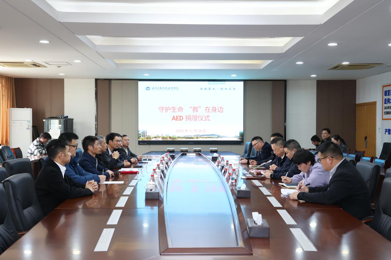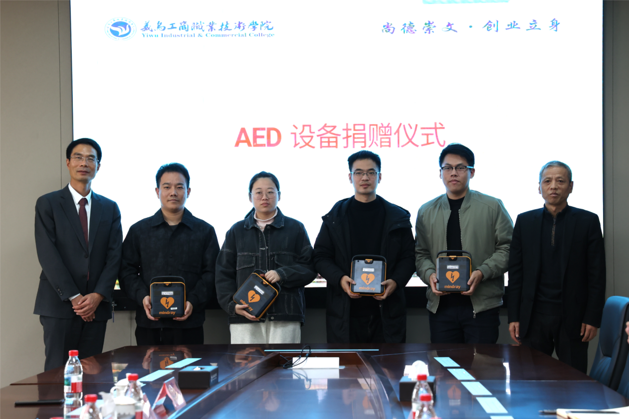 11月26日下午,义乌天祥医疗东方医院向学校无偿捐赠4台自动体外除颤器(AED),为校园师生的生命安全增添“硬核”保障。义乌市红十字会党组书记、常务副会长翁一兵、副会长秦景昌、二级主任科员唐光溥,捐赠方义乌天祥医疗东方医院院长王跃胜、副院长张红金、工会主席杜方方、急诊科主任胡宇翔,受赠方学校校领导樊曜、高燕,相关职能部门负责人、教师代表出席仪式。