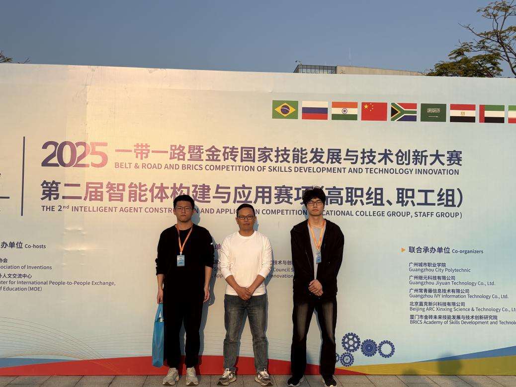 近日,2025“一带一路”暨金砖国家技能发展与技术创新大赛之第二届智能体构建与应用赛项全国总决赛在广州城市职业学院落下帷幕。在这场代表国内高职院校与行业职工顶尖水平的赛事中,由uedbet,uedbet体育陈志军、彭学军老师指导,来自大数据工作室的学生郭天正、陈泓凭借出色的理论功底与实操能力,勇夺全国总决赛一等奖,彰显uedbet,uedbet体育在人工智能前沿应用领域人才培养的显著成效。