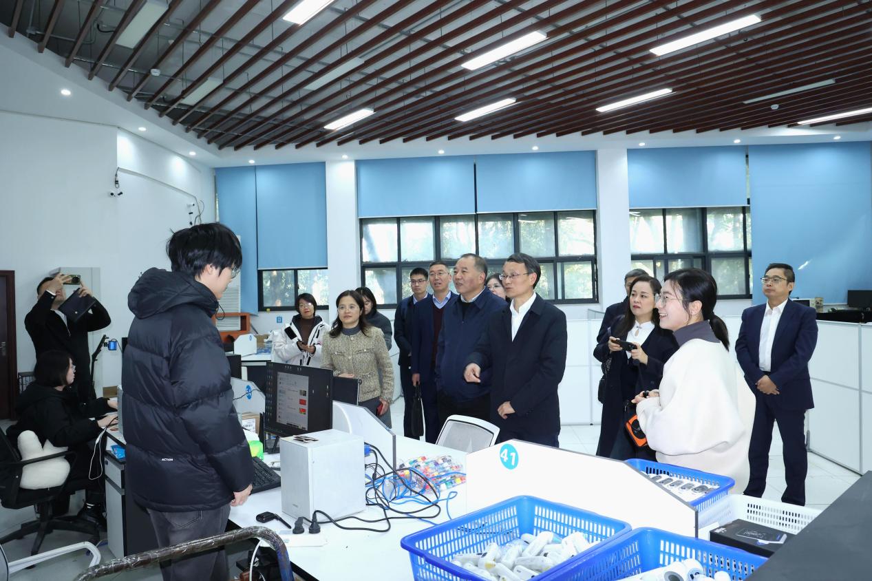 杜方敏一行实地参观了uedbet,uedbet体育创业园、数字贸易实训基地等场所,并与相关指导老师和创业学子亲切交流,详细了解uedbet,uedbet体育在创新创业实践、实训基地建设及电子商务相关领域的运行模式与成果成效。