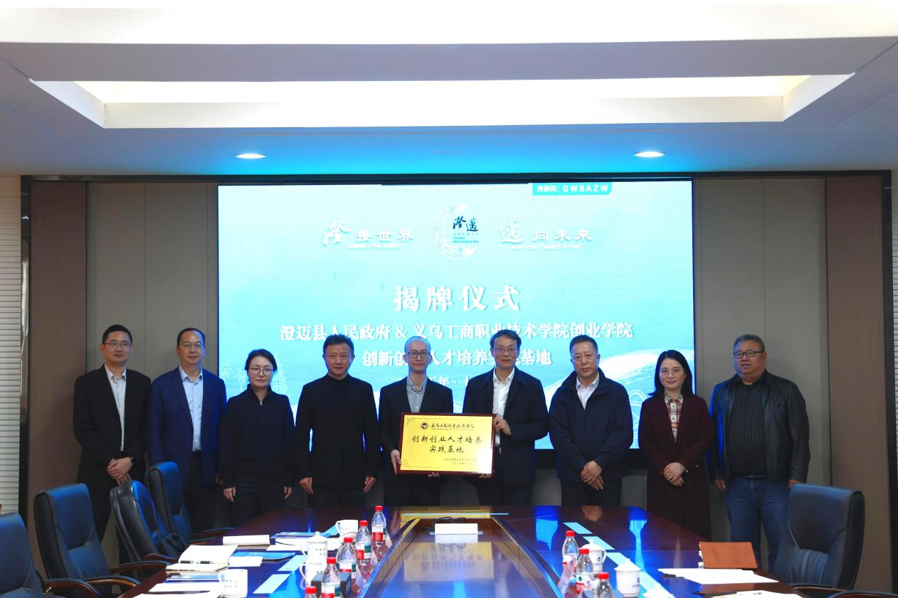 座谈会最后,澄迈县老城科技新城管理局与学校正式签署战略合作协议;澄迈县人民政府与学校创业学院共同为双方共建的“创新创业人才培养实践基地”揭牌。