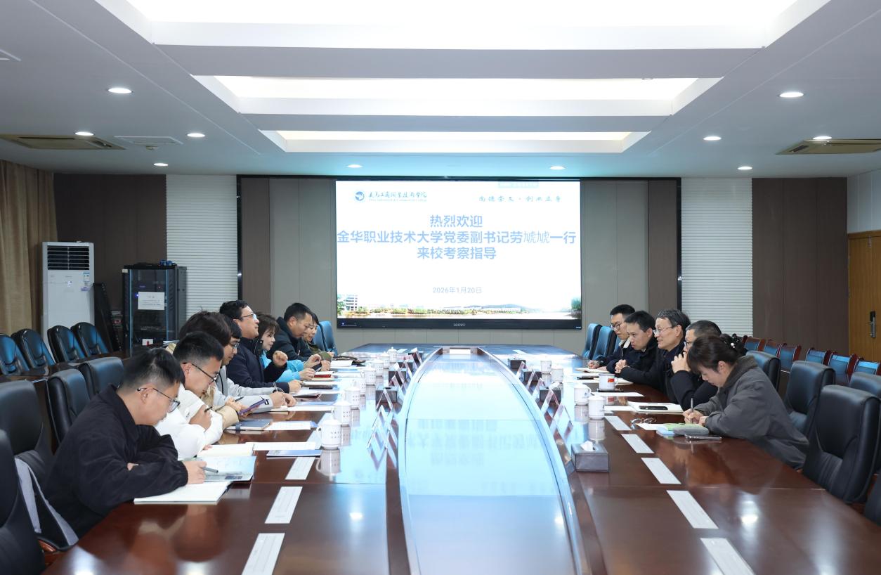 1月20日下午,金华职业技术大学党委副书记劳虓虓一行8人来校考察交流。学校党委书记李昌祖以及创业管理处、学生工作部、创业学院等相关负责人陪同考察并开展座谈交流。