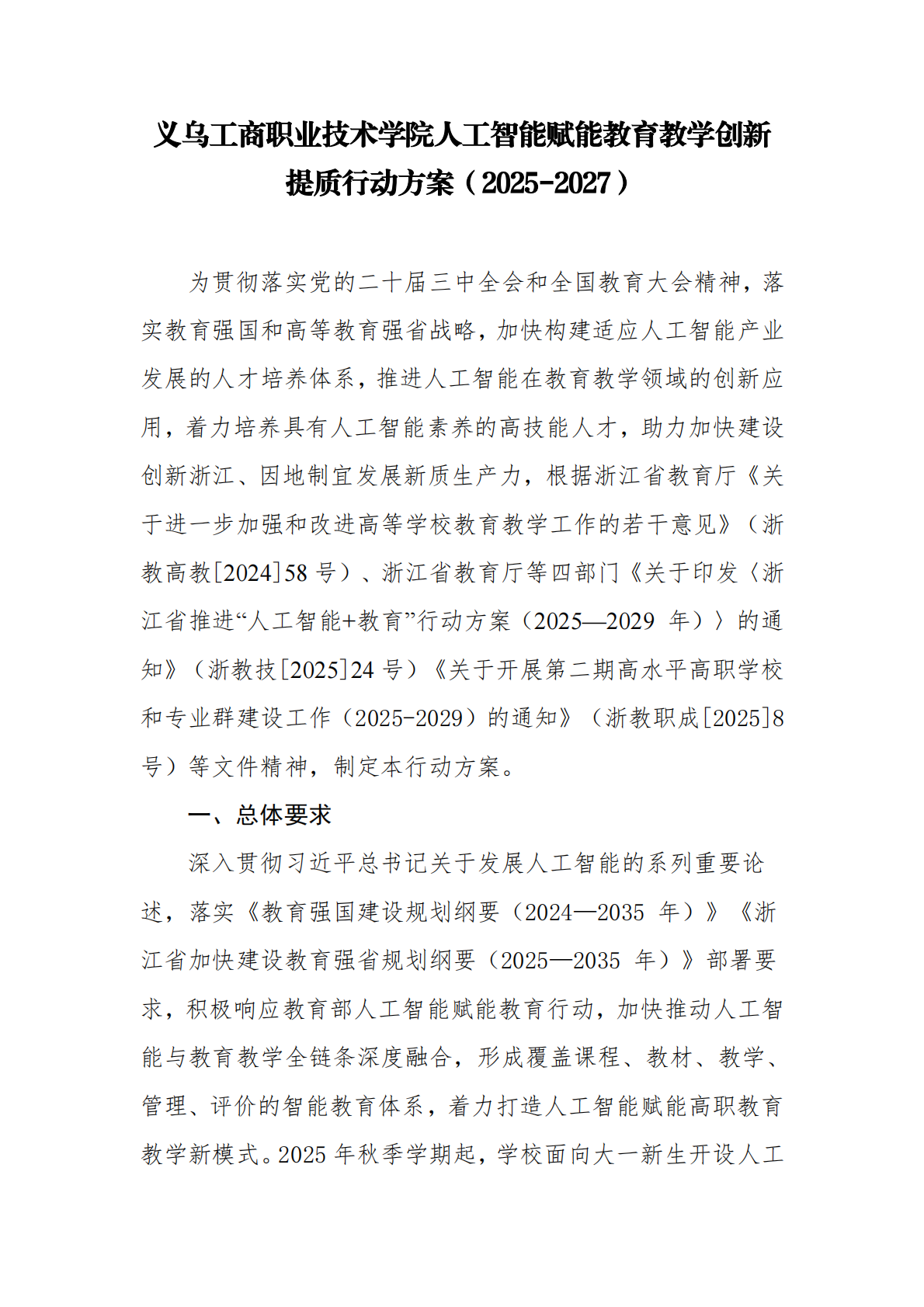 绘就一幅行动计划蓝图。学校依托课程与教材研发中心,制订《义乌工商职业技术学院人工智能赋能教育教学创新提质行动方案(2025-2027年)》等文件,明确要求将人工智能有机融入资源建设、教学实施、管理评价等全过程,构建校本智慧化课程评价系统,推动课程优化迭代与升级,一体化推动教学资源的智能升级,形成覆盖五金等职业教育教学全要素的“人工智能+”教育体系。