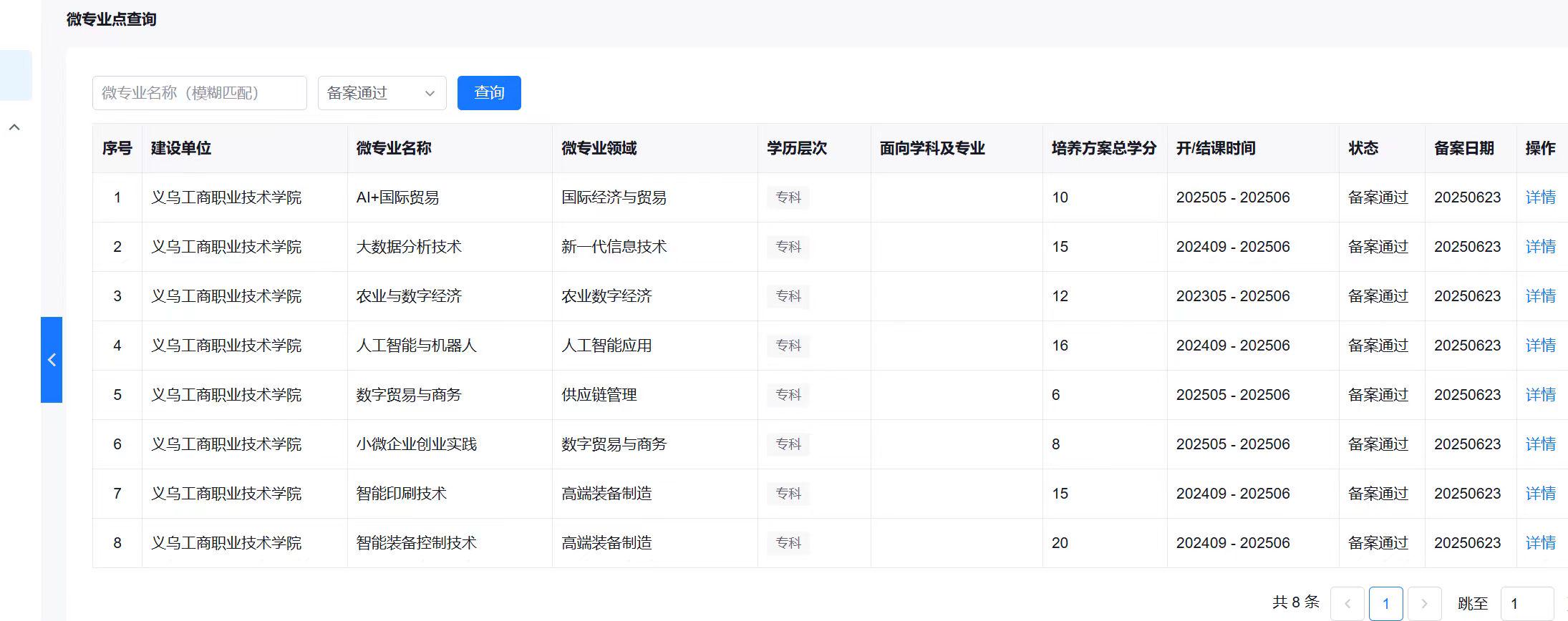 建设一批“AI+微专业”群。围绕国家战略导向、区域产业布局及市场动态需求,以全面提升学生就业竞争力为核心,加快推进紧缺领域微专业体系建设。重点布局“AI + 国际贸易”“直播营销与数字化运营”等特色方向,推动“AI 赋能数字贸易”等典型行业实践案例向课程内容转化,精准应对技术快速迭代带来的人才供给挑战。目前,学校已有8个微专业通过教育部备案,实现与地方产业发展需求的深度对接,切实发挥其在服务未来产业与战略性新兴产业发展、促进学科知识融合创新方面的重要作用。学校将持续加强微专业建设的过程管理与质量支持,设立专项经费并实施常态化培育机制。同时,鼓励各二级学院积极开展区域人才供需前瞻研判,有序拓展“人工智能+”微专业的覆盖面与布点范围,推动人才培养结构与产业发展需求实现更精准、更动态的适配。