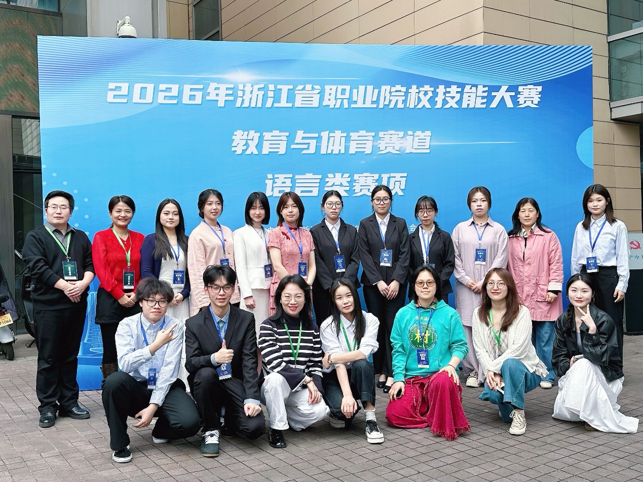 4月8日-10日,2026年浙江省职业院校技能大赛高职组教育与体育赛道比赛顺利落下帷幕。本次大赛由浙江省教育厅主办,赛项分为教育体育类及语言类。语言类由浙江经济职业技术学院承办,来自全省21所院校的52支队伍203名选手参赛。经过激烈角逐,应用西班牙语专业黄欣、吴小渊两位老师指导,陈涵玙、胡丹娜、曾劲风、骆星辰4名同学组成的参赛队在语言组中脱颖而出,荣获金奖;应用英语专业朱静娴、杨瑜熙两位老师指导,鲍佳慧、李芷若、黄俊、曹萌4名同学组成的参赛队获得银奖;应用英语专业周帆、相廷礼两位老师指导,周炜茜、林丹妮、黄简佳、朱子墨4名同学组成的参赛队获得铜奖。