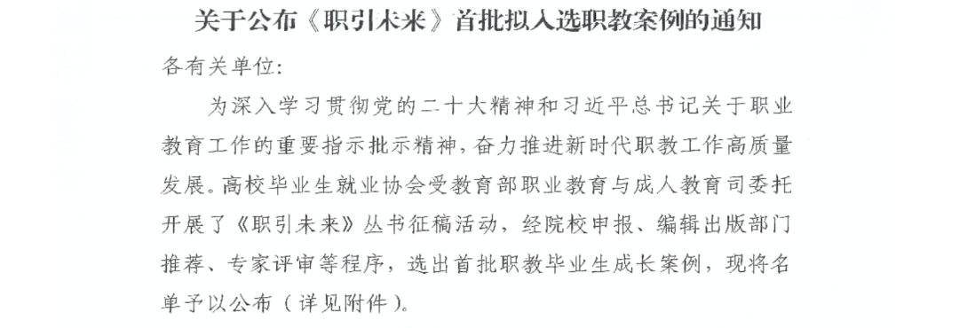 《职引未来》是高校毕业生就业协会受教育部职业教育与成人教育司委托所开展的职教案例征集活动,经院校申报、编辑出版部门推荐、专家评审等程序,选出首批职教毕业生成长案例。案例体现了职业教育的典型性,诠释了劳模精神、劳动精神和工匠精神,进一步推动新时代职教工作高质量发展。