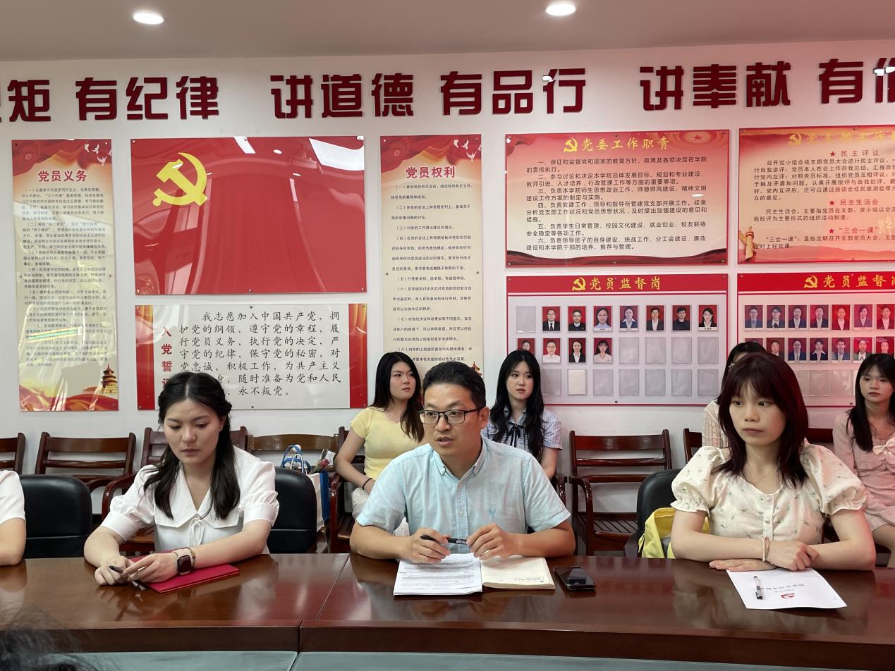 根据学校《uedbet,uedbet体育开展党纪学习教育的工作方案》要求,6月14日,人文旅游学院党委在学院会议室开展毕业生党员集体党日活动暨“四个一”行动,即接受一次廉政谈话、签订一份廉政承诺书、参加一次党规党纪培训、开展一次志愿服务。学院纪委负责人出席。