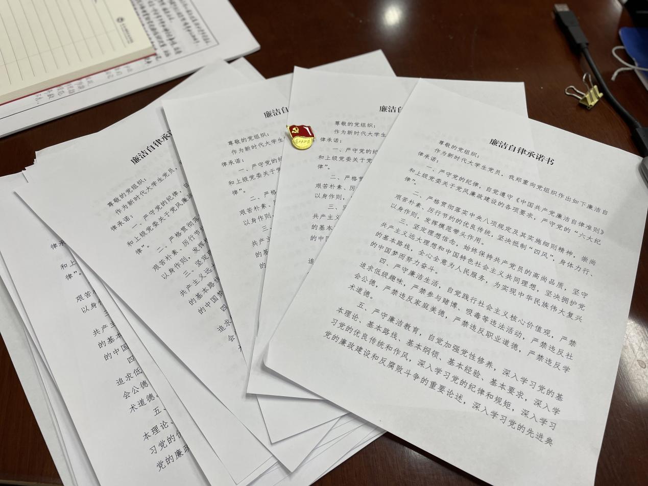 谈话结束后,每位毕业生党员现场签订了一份廉政承诺书,承诺到新单位后,第一时间向党组织报到,自觉接受新的党组织和群众的监督,预备党员还要主动汇报个人思想、工作、生活情况,及时纠正错误和不足。