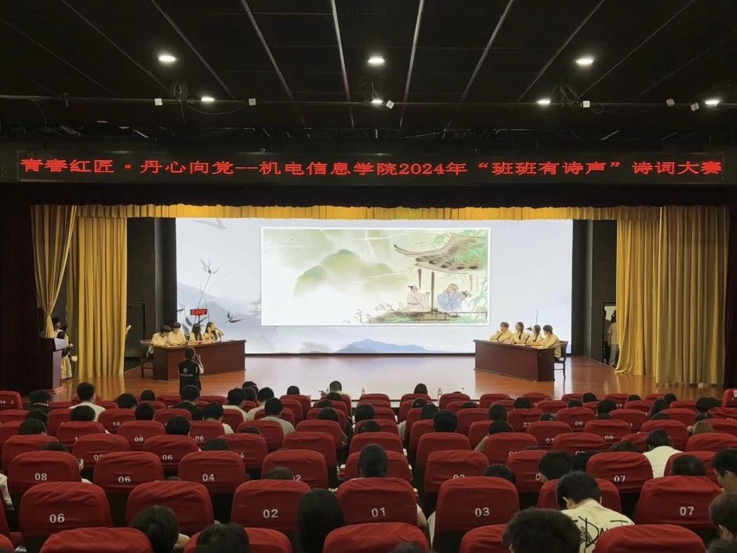 在“七一”建党节来临之际,机电信息学院在丹溪文化厅举办了“青春红匠丹心向党”2024年“班班有诗声”诗词大赛决赛。本次大赛旨在推进“红匠”文化品牌建设,加强学生的文化素养,推动优秀传统文化在校园内的传承与发展,凝聚奋进力量。
