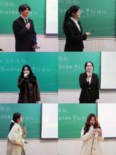 “学风优良班级”争创评比活动分学院初评和现场汇演两个环节,经过学院初评,共有10支班级队伍入围决赛现场。参赛班级按照抽签顺序,通过5分钟学风建设成果汇报展开激烈角逐。各班级通过视频、演讲等多元形式,结合学风理念、日常管理、特色活动等多维度,生动呈现课堂内外的专注与协作,传递对知识的热爱与敬畏,展现我院学子勤学善思的进取精神、团结协作的积极态度、全面发展的卓越水平。