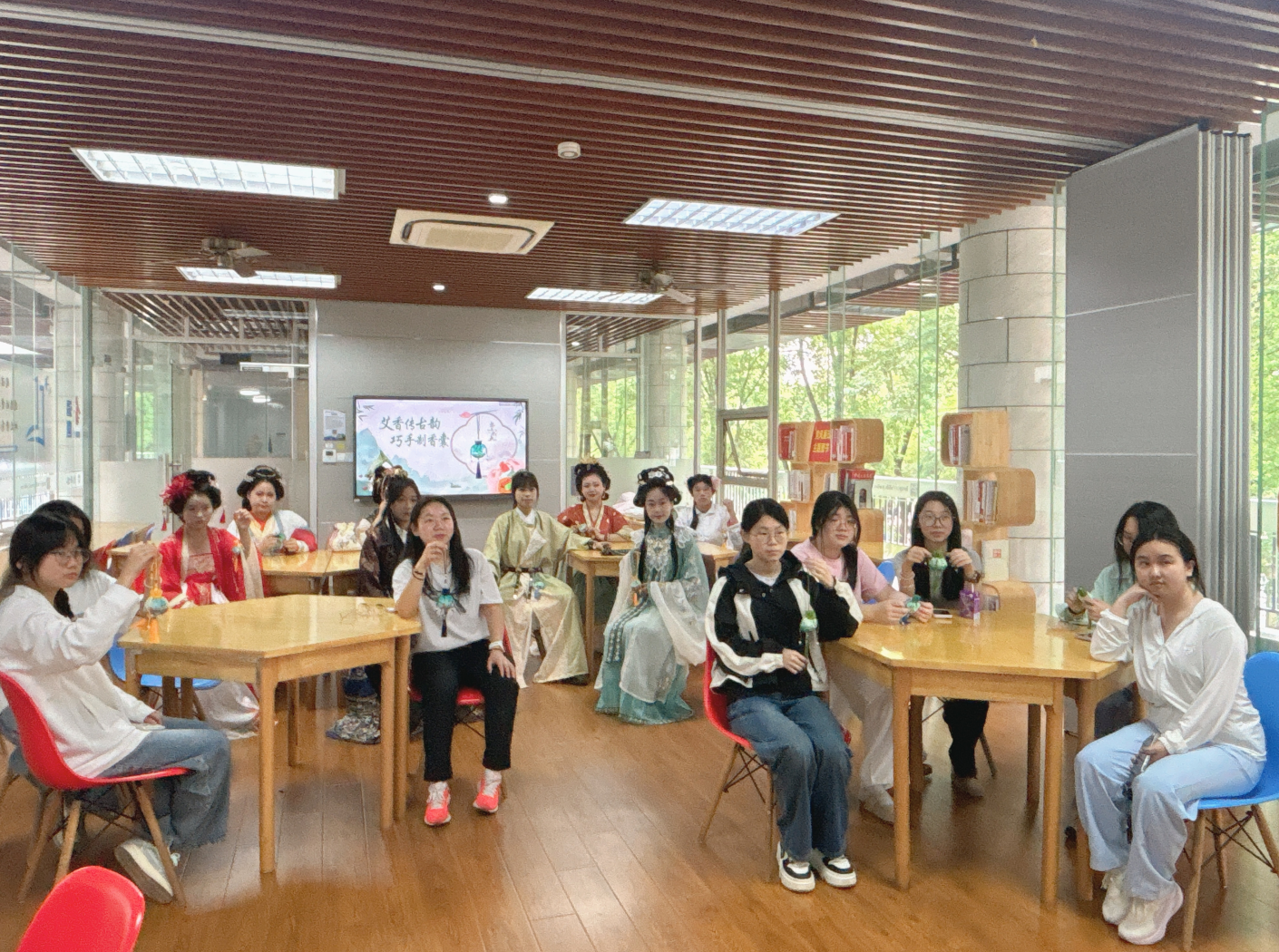 为迎接端午佳节,弘扬中华优秀传统文化,5月29日下午,由图书档案中心策划并主办、校汉服社与冰果英语协办的“艾香传古韵 巧手制香囊”端午主题手作体验活动,在图书馆202室和203室温馨开启,吸引了众多师生热情参与。