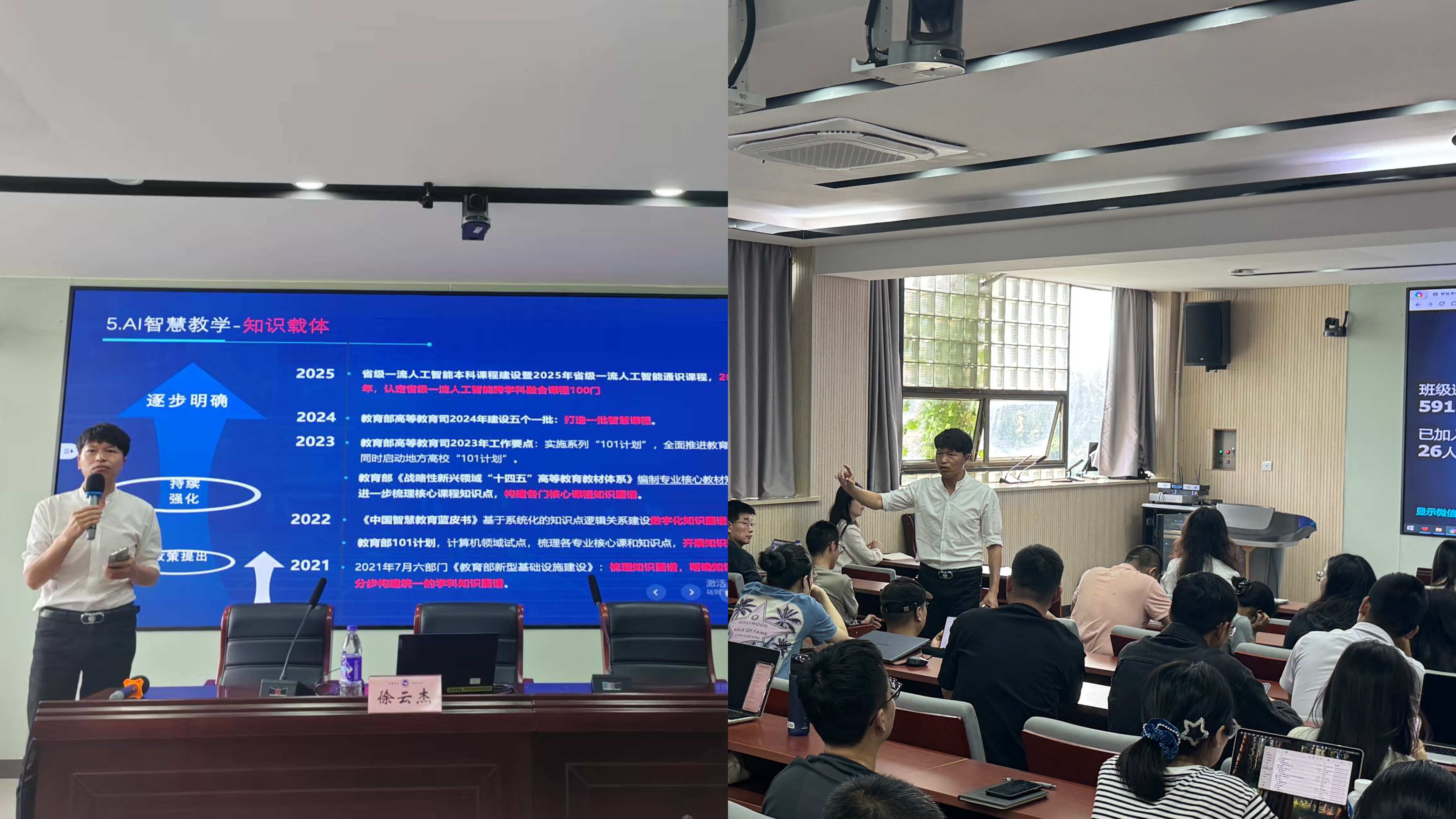 为深入落实国家教育数字化战略行动,推动人工智能与教育教学深度融合,提升教师数字化教学能力及课程建设水平,5月29日下午,学校在教师发展中心报告厅开展“人工智能赋能教育教学改革”专题培训。本次培训会邀请了湖州师范学院教学发展中心主任、教务处副处长徐云杰教授进行智慧课程建设经验分享。教务处相关负责人、学校课程建设项目负责人及骨干教师共计80余人参加培训。