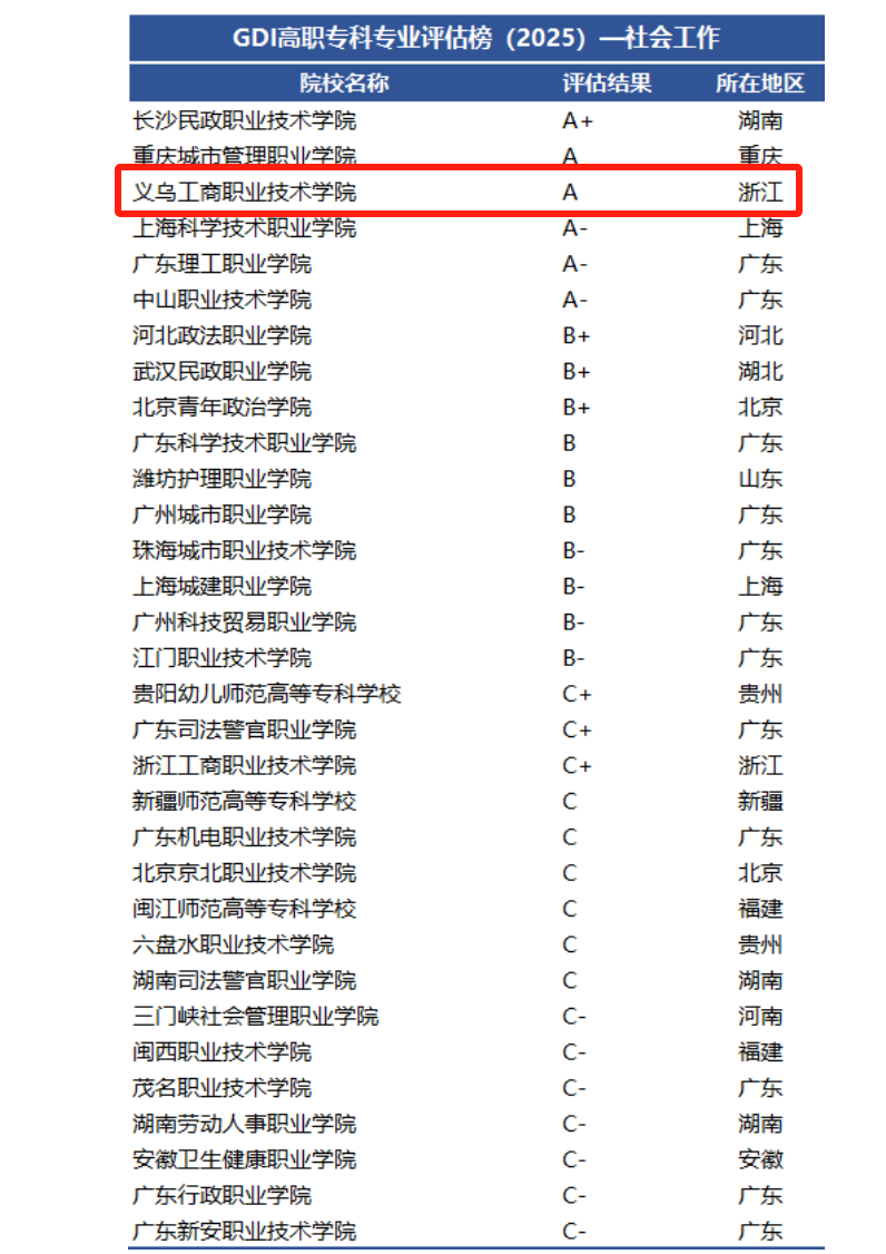 2025年6月12日,广州日报数字化研究院(GDI智库)正式发布“GDI高职专科专业评估榜(2025)”,uedbet,uedbet体育社会工作专业位列全国第三名,获评A级。
