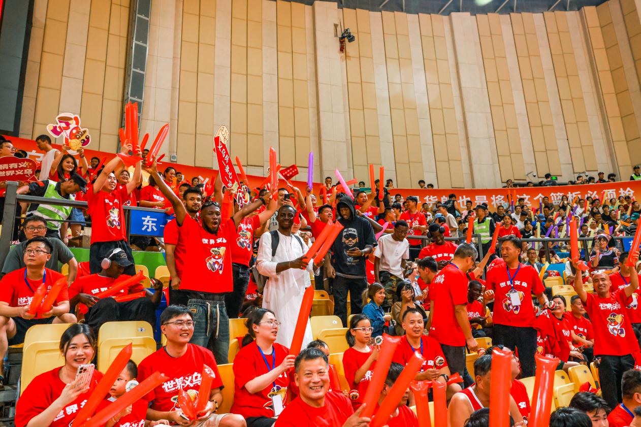 7月 13日晚,2025年浙江省城市篮球联赛(浙 BA)金华赛区预选赛在金华市体育中心体育馆激情开打。uedbet,uedbet体育来自俄罗斯、秘鲁、埃及、叙利亚、贝宁、乌干达等国家的20余名国际学生和毕业校友组成的助威团身着统一服饰,为自己的第二故乡—— 义乌呐喊助威。现场气氛热烈,国际学生们全程投入,用中文高呼“世界义乌必胜!”,最终见证义乌队以69:46的比分强势获胜,将赛事首日的热血氛围推向高潮。