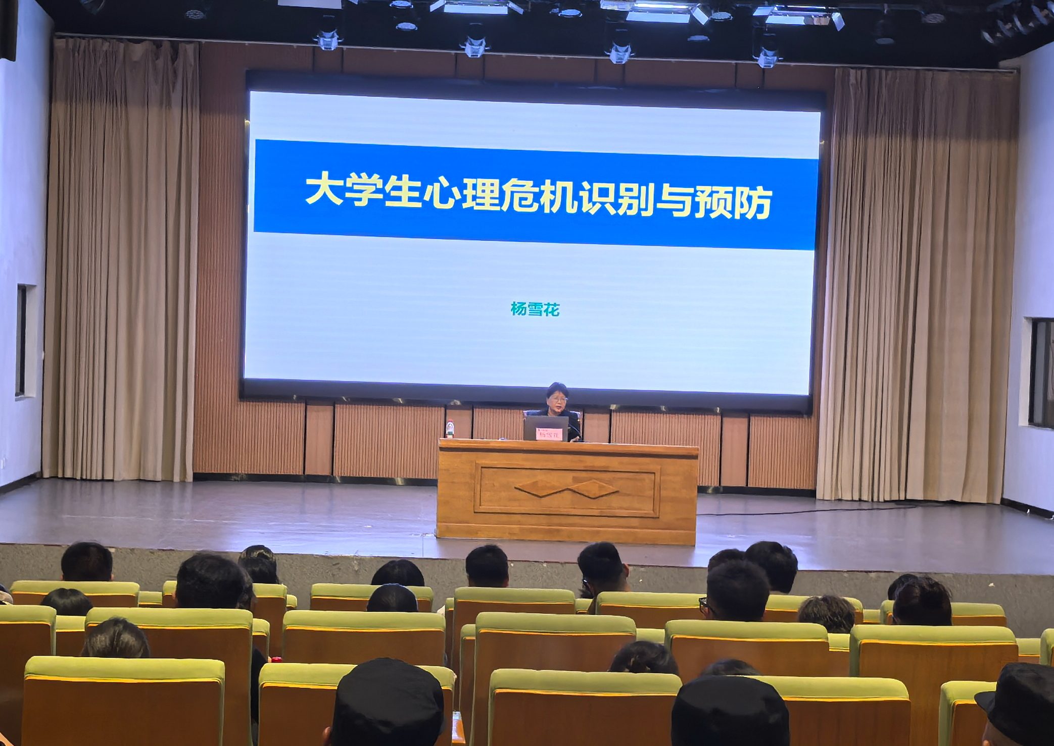 讲座中,杨雪花教授凭借丰富的实践经验,以大量真实案例为引,系统剖析了大学生心理危机的常见表现与识别技巧。她指出,除情绪低落、言语消极等显著信号外,更需警惕作息紊乱、社交回避、卫生状况骤降等日常行为的细微变化。针对不同岗位特性,杨教授给予了精准的指导,并详细阐述了从发现苗头到科学干预的完整流程,强调了“及时报告、专业干预、全程陪伴”的核心原则。她强调,全体与会人员是守护学生的“第一道防线”,是那个最关键的“发现者”和“报告人”。