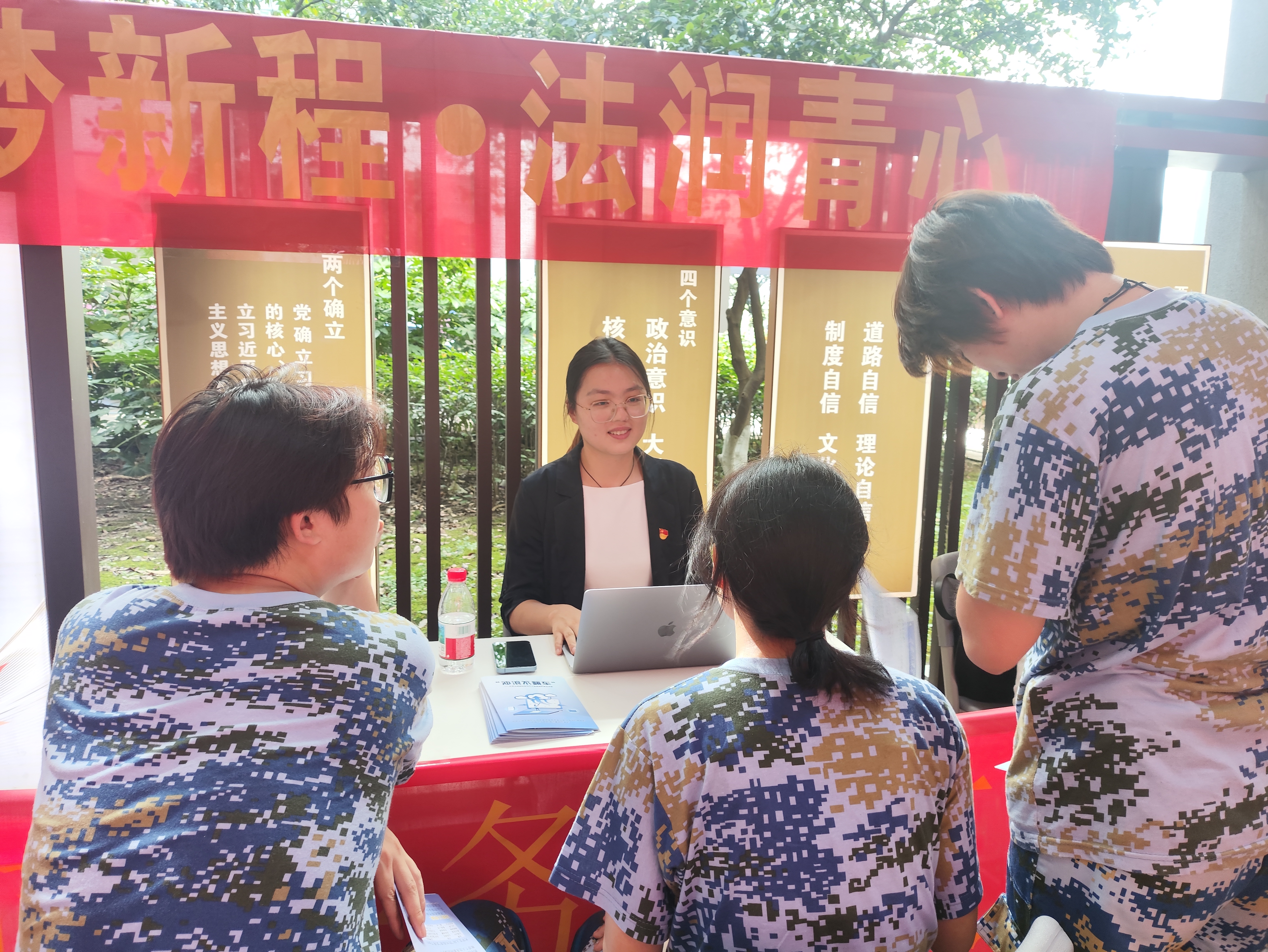 本次活动由义乌工商职业技术学院组织部、宣传部、学工部、安保部、团委、马克思主义学院联合主办,马克思主义学院道德形策党支部与道德法治教研部具体承办,浙江东邦律师事务所党支部、江东派出所、鸡鸣山社区协办。校地双方紧密协作、精准发力,吸引校内师生踊跃参与,营造出“尊法、学法、守法、用法”的浓厚校园氛围。
