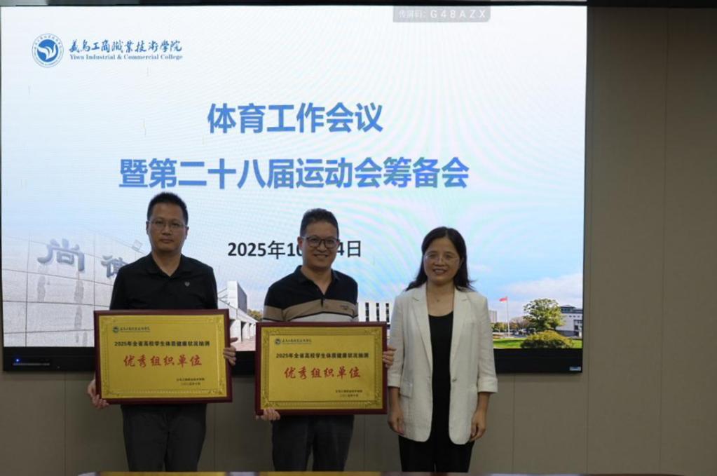 会上,马克思主义学院党委负责人从体育教学、体育竞赛、体育氛围营造、体质测试、体育工作保障等方面汇报了上一学年体育工作取得的成绩、存在的问题和下一步举措。随后,颁发了2025年省体质抽测优秀组织单位奖牌,建筑工程学院和人文旅游学院分享了省体质抽测经验。体育健康教研部负责人汇报了运动会前期筹备工作情况并讲解了运动会竞赛规程。