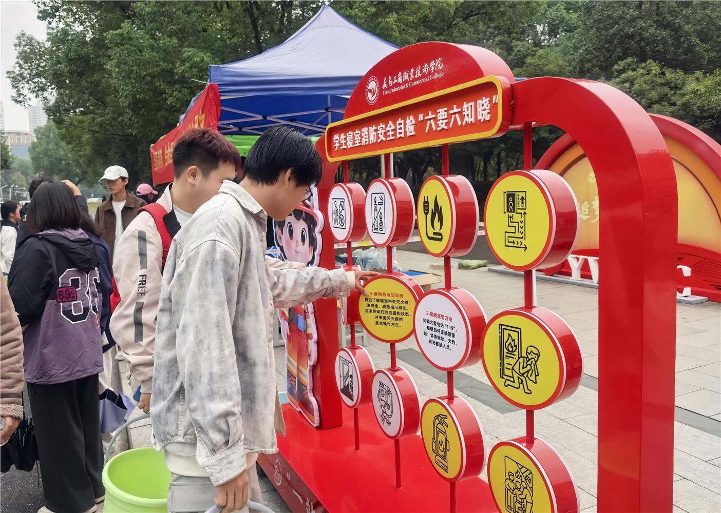本次活动设立了消防安全知识海报展和趣味互动区,通过“消防安全我来答”“消防隐患我来查”“消防标识我来认”等互动环节加深了师生对消防安全的认知和理解,直接吸引了500余名师生现场参与。